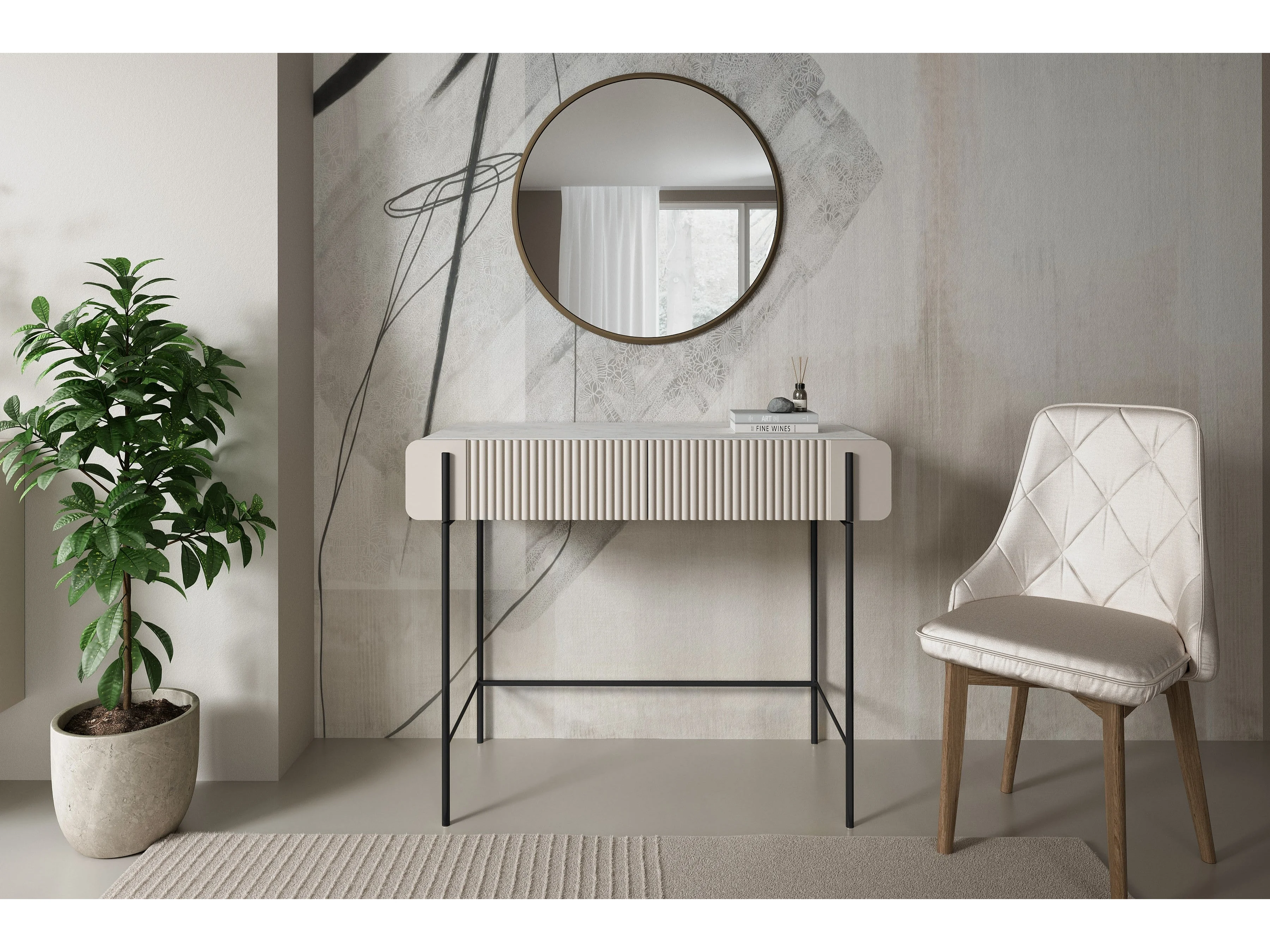 Consola de 2 gavetas com pés de metal em caxemira 100x85 cm