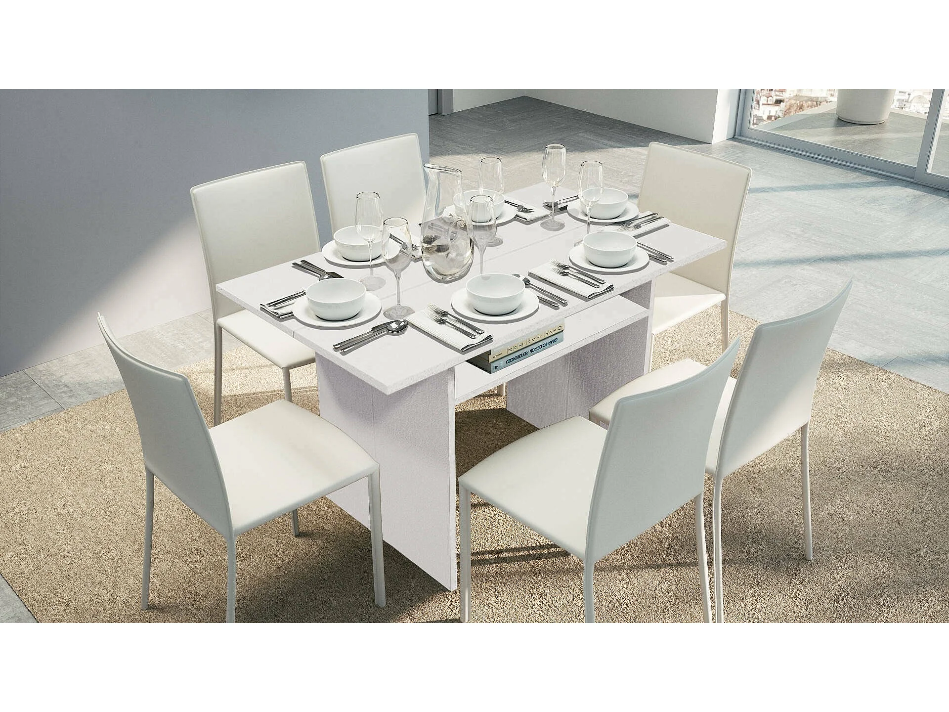 Consola extensível Dgalles, Mesa de jantar com abertura para livro, Consola multiuso extensível, 100% Fabricado em Itália, 120x70h75 cm, Branco