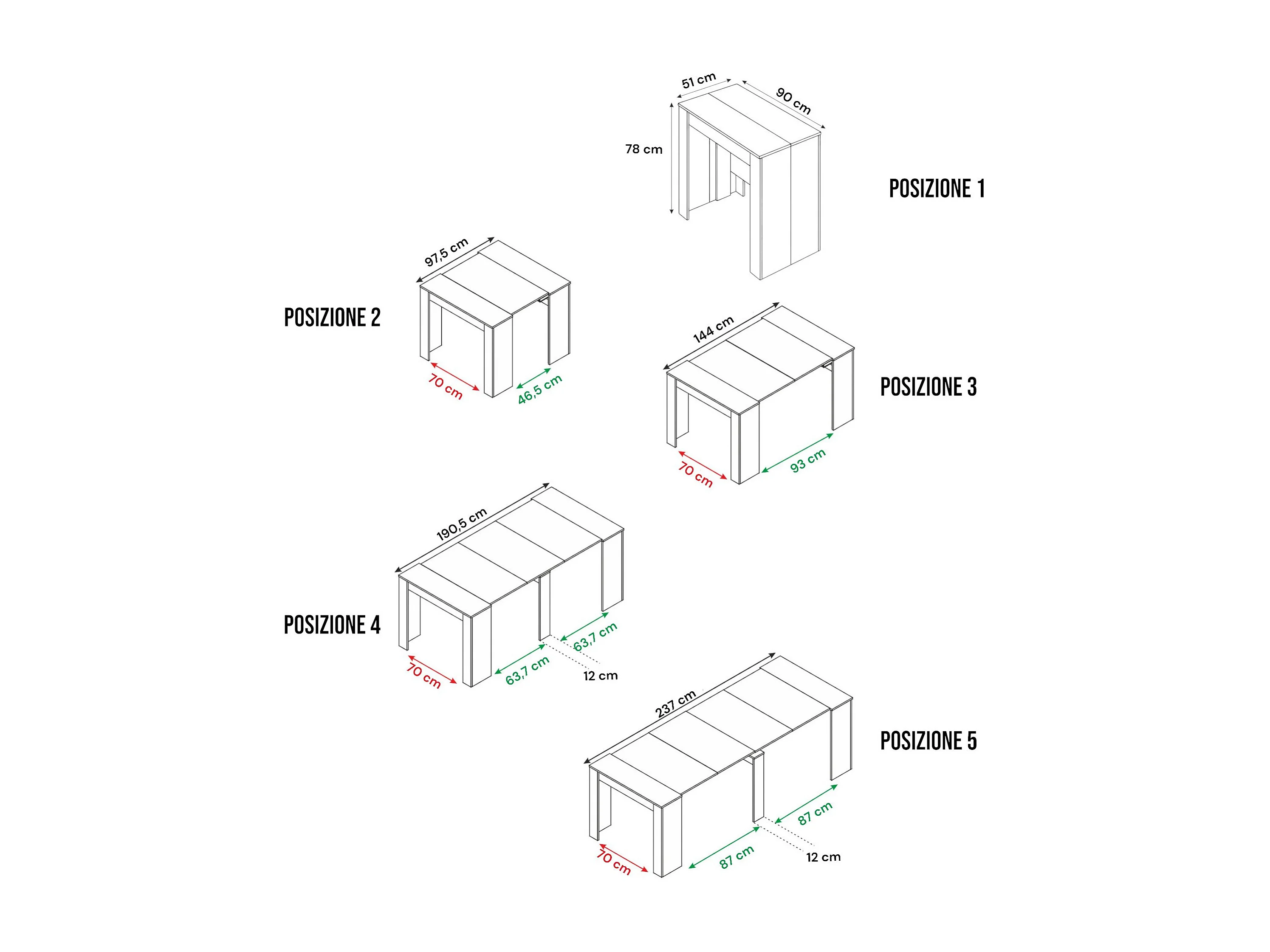 Consola extensível Diluna, Mesa de jantar extensível, Prateleira com extensões multiusos extensíveis até 10 lugares, 51/237x90h78 cm, Antracite