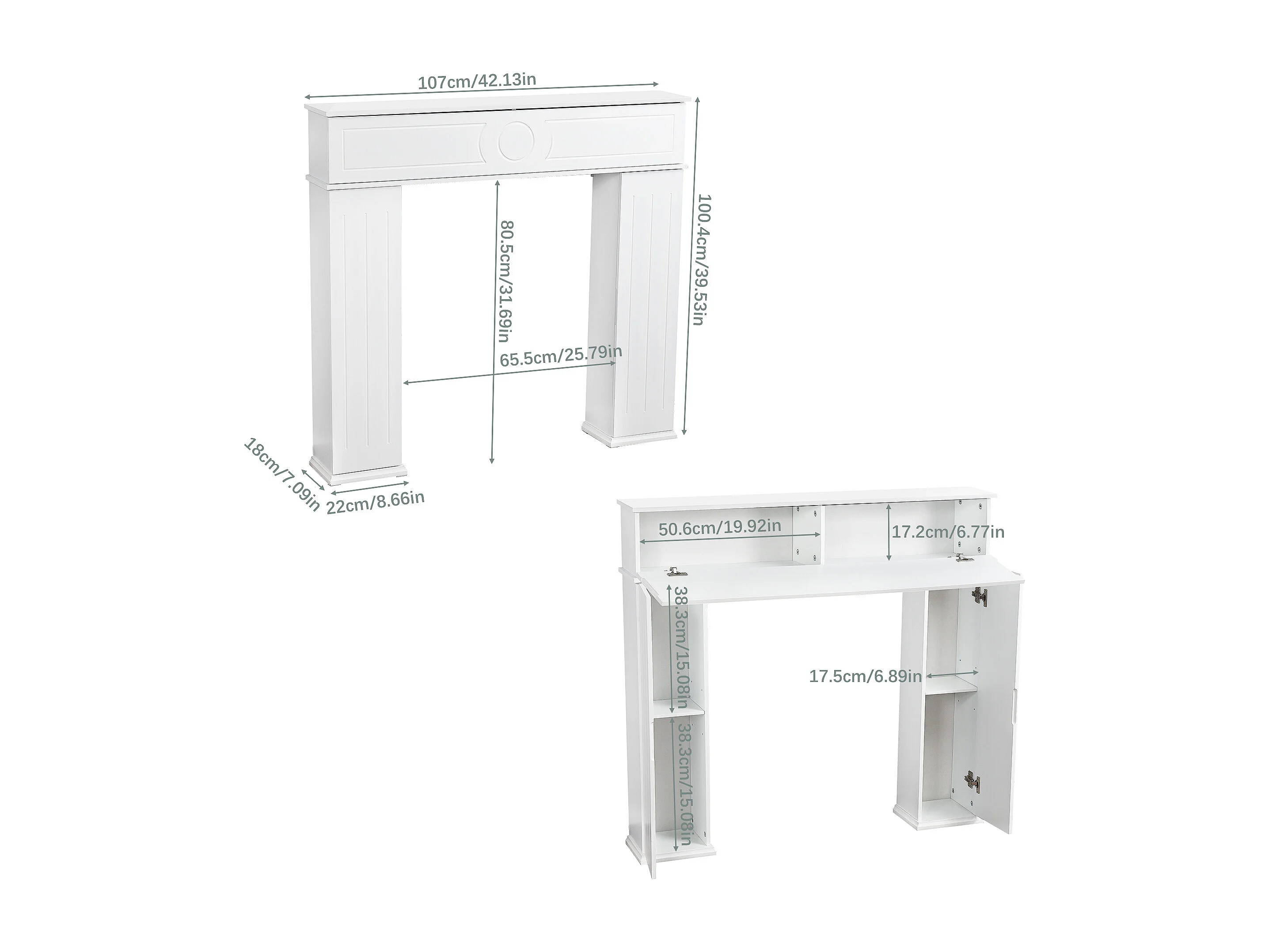 Console de lareira 107 x 18 x 100 cm, Armário de armazenamento decorativo com espaço de armazenamento