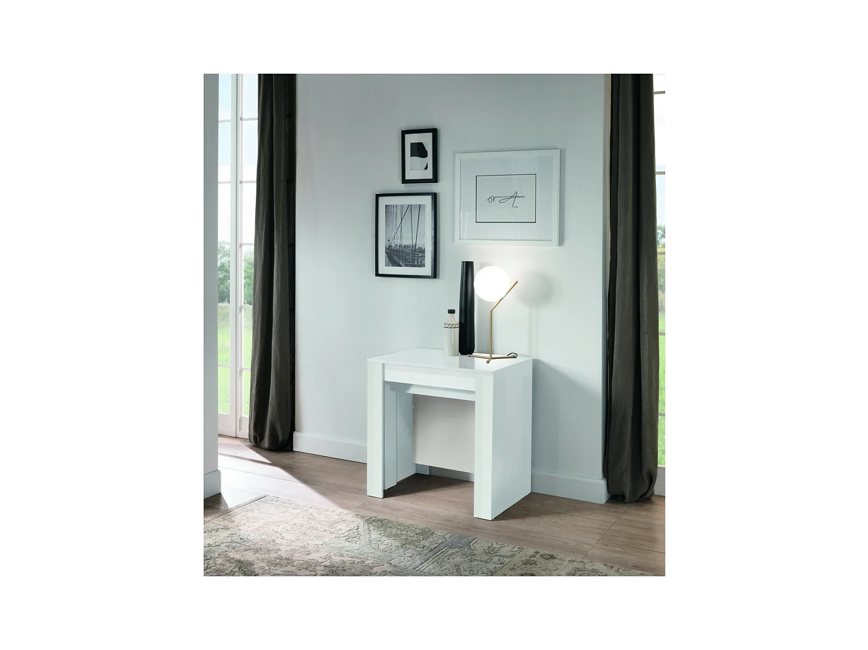 Console extensível, Coleção NOSOL, cor branco brilhante, dimensões 54x78cm.