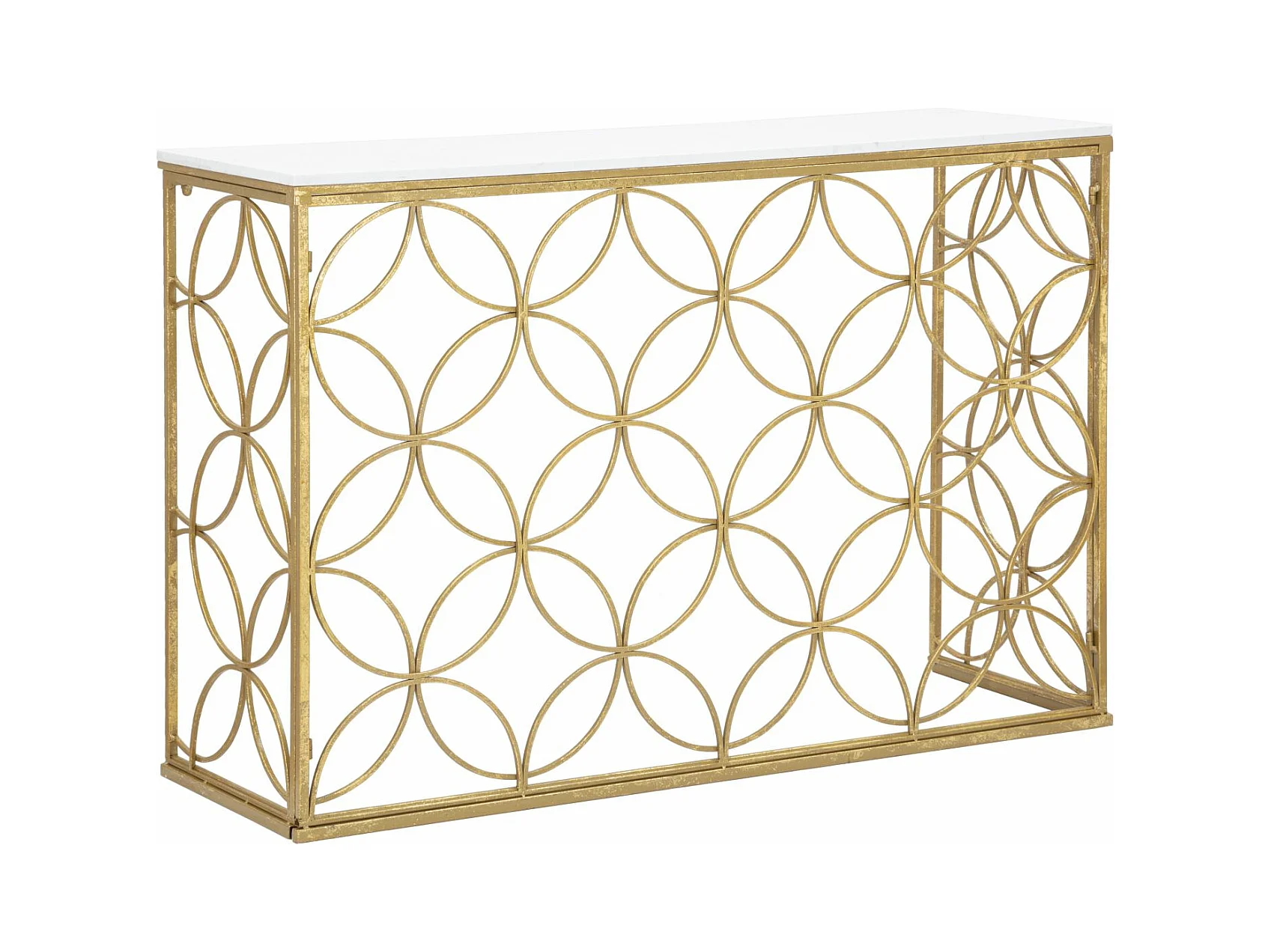 Console 100x30x80 cm - Base dourada - MDF - Branco + Ouro