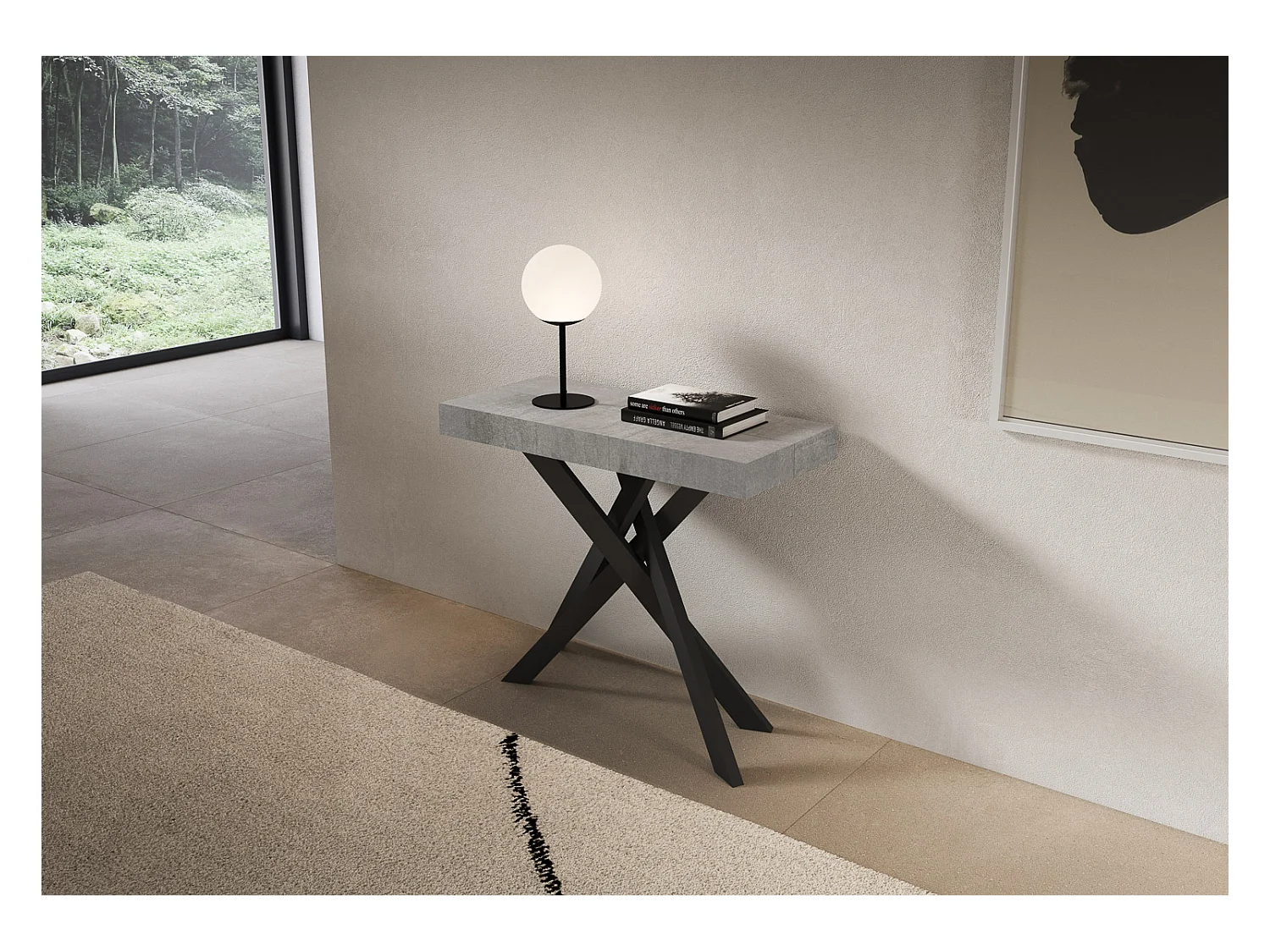 Mesa consola extensível 90x40/196 cm Zamat Small cimento quadro antracite