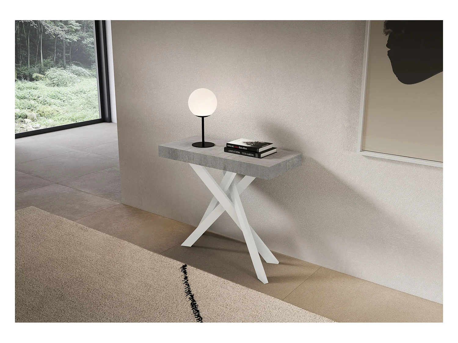 Console extensível 90x40/300 cm Saki concreto pernas brancas