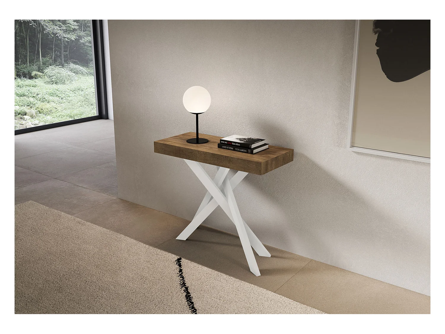 Consola extensível 90x40/300 cm Pernas brancas nogueira Saki