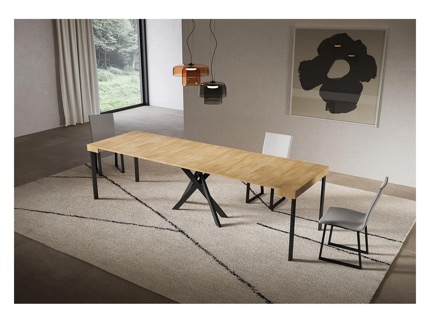 Consola extensível 90x40/300 cm Saki pomba cinza antracite pernas