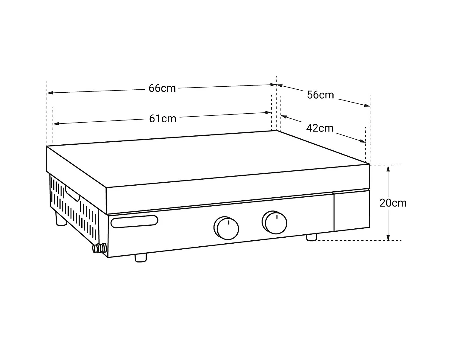 Chapa a gás "Presto 2" - 2 queimadores - Superfície de cozimento de 46 x 39,5 cm - Cinza