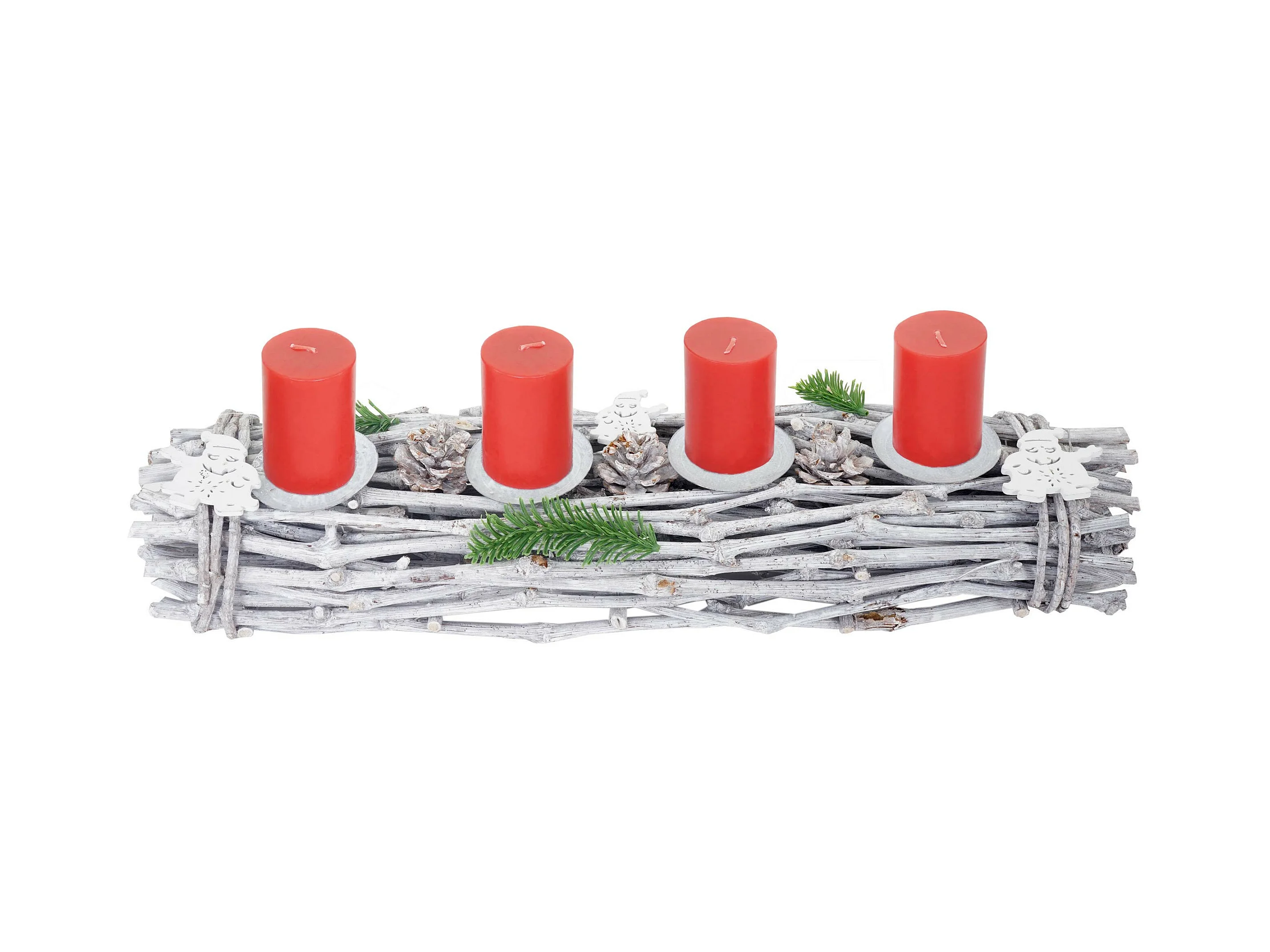 Coroa de Advento velas de madeira alongadas vermelho, com velas, vermelho