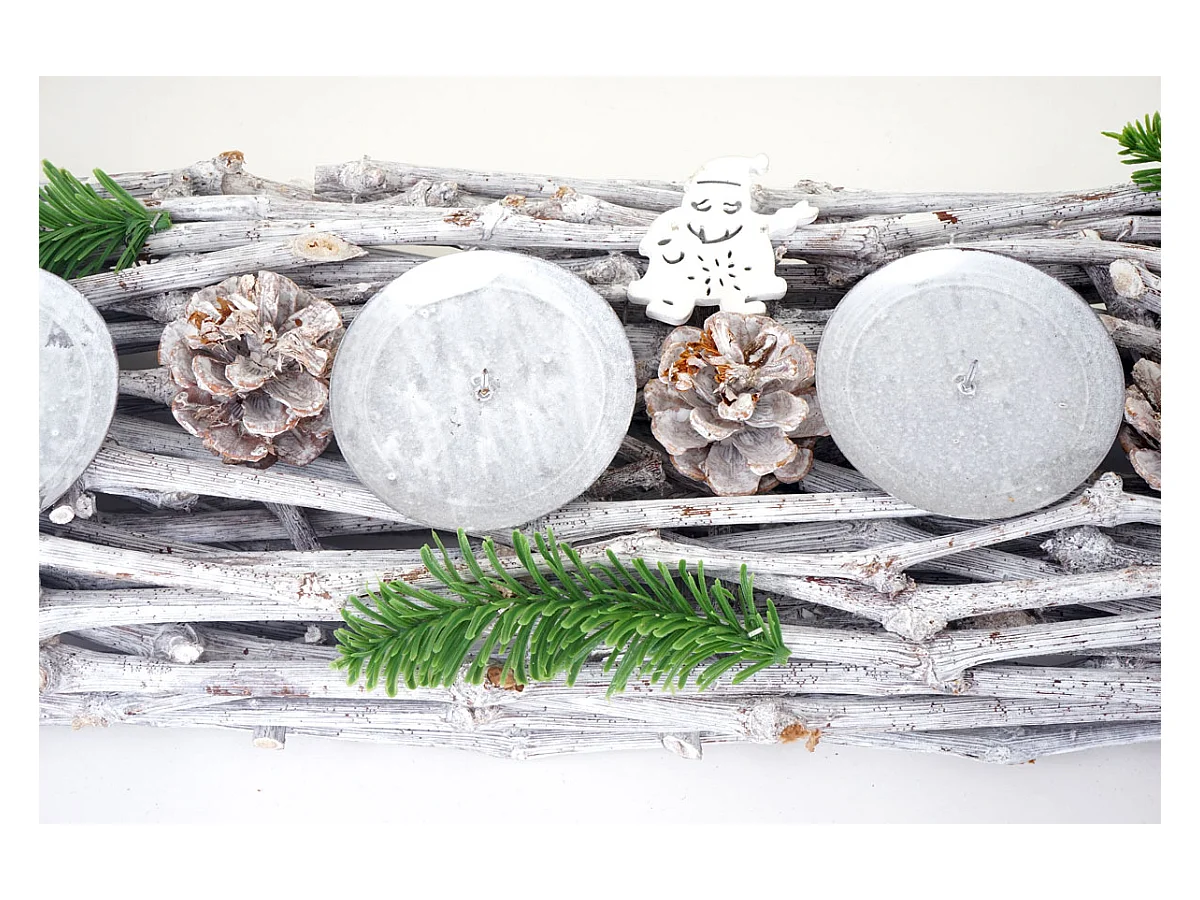 Grinalda do Advento velas de madeira alongadas brancas, com velas, branco
