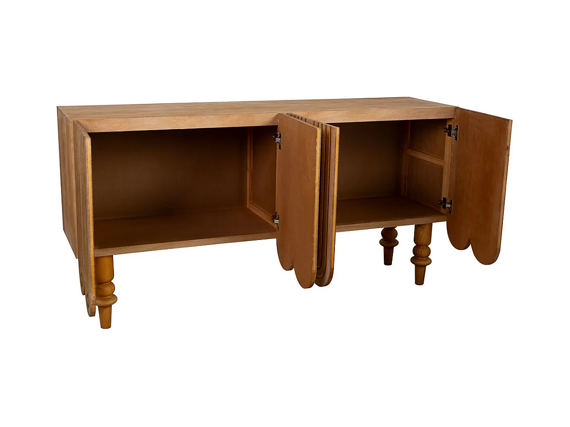 Bufê com efeito espinha de peixe 2 portas e 2 prateleiras em madeira de alta qualidade