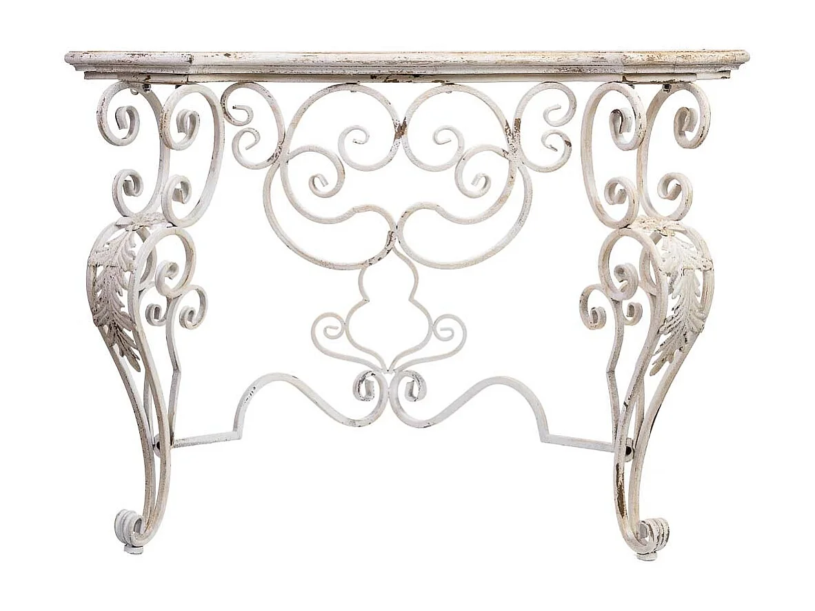 Corredor em madeira e metal com acabamento branco envelhecido.