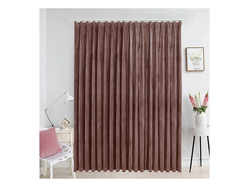 Cortina blackout com ganchos 290x245 cm veludo rosa antigo PT450952