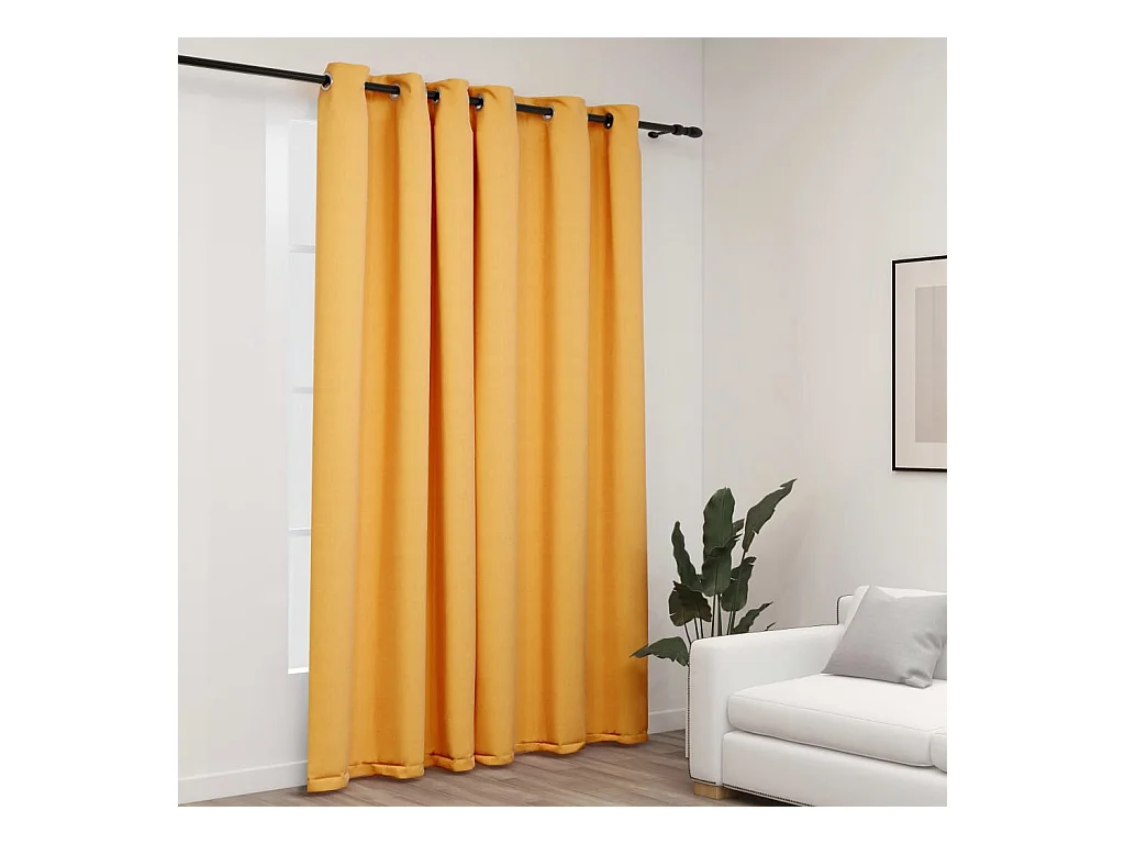 Cortina opaca aspeto de linho com ilhós 290x245 cm amarelo PT674679