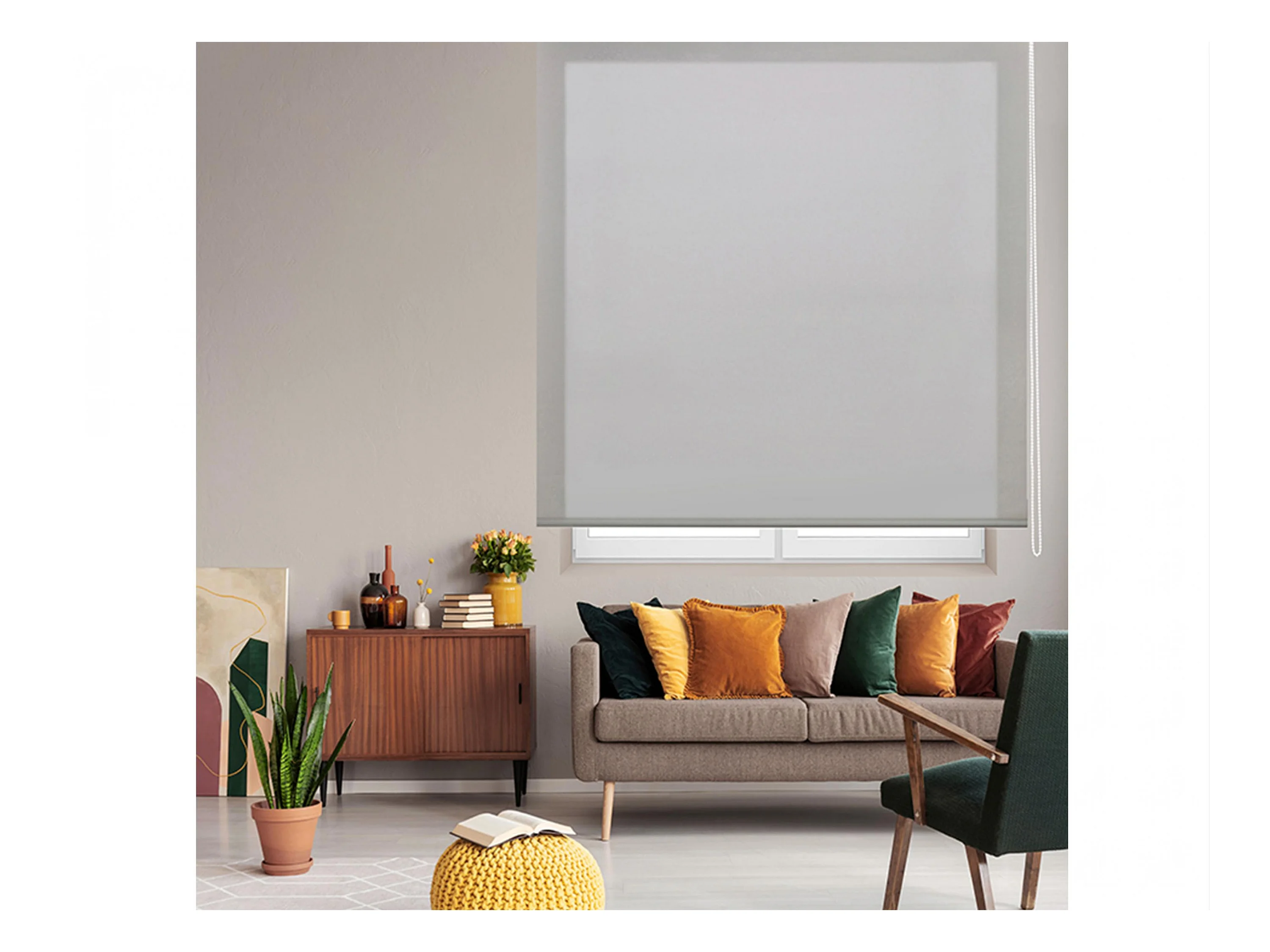 Cortina de rolo translúcido com trama simples e corrente manual