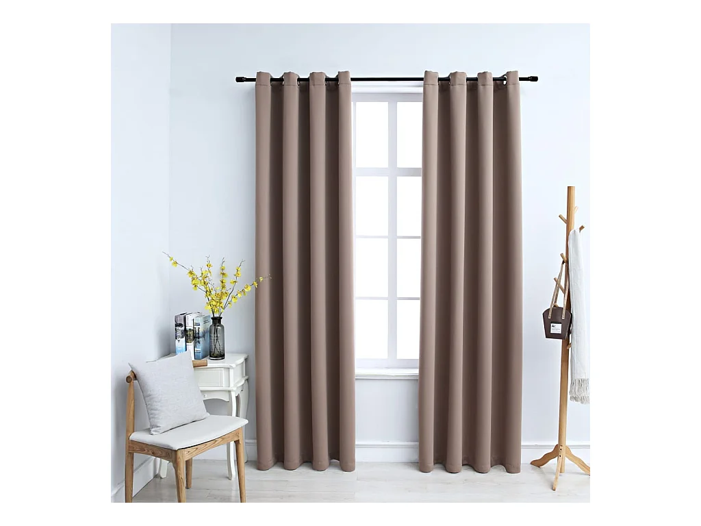 Cortinas blackout com argolas de metal 2 peças Taupe 140x175 cm