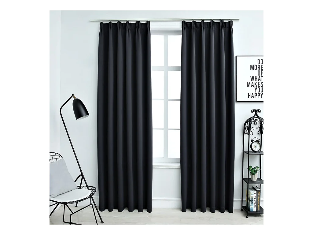 Cortinas blackout com ganchos 2 peças pretas 140x175 cm