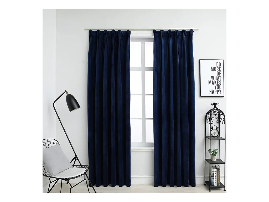 Cortina blackout com ganchos Veludo Azul escuro 290x245 cm