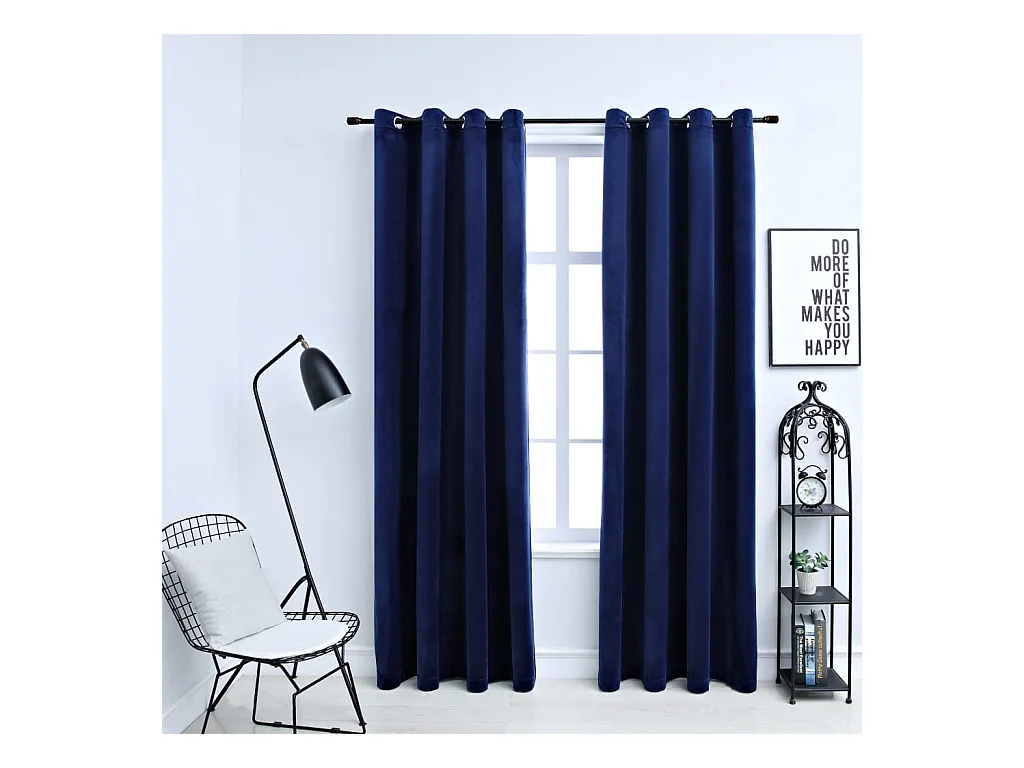 Cortinas e Argolas Blackout 2pcs Veludo Azul Escuro 140x245cm