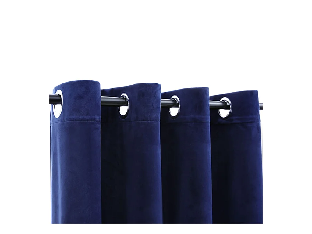 Cortina e argolas blackout de veludo azul escuro 290x245 cm