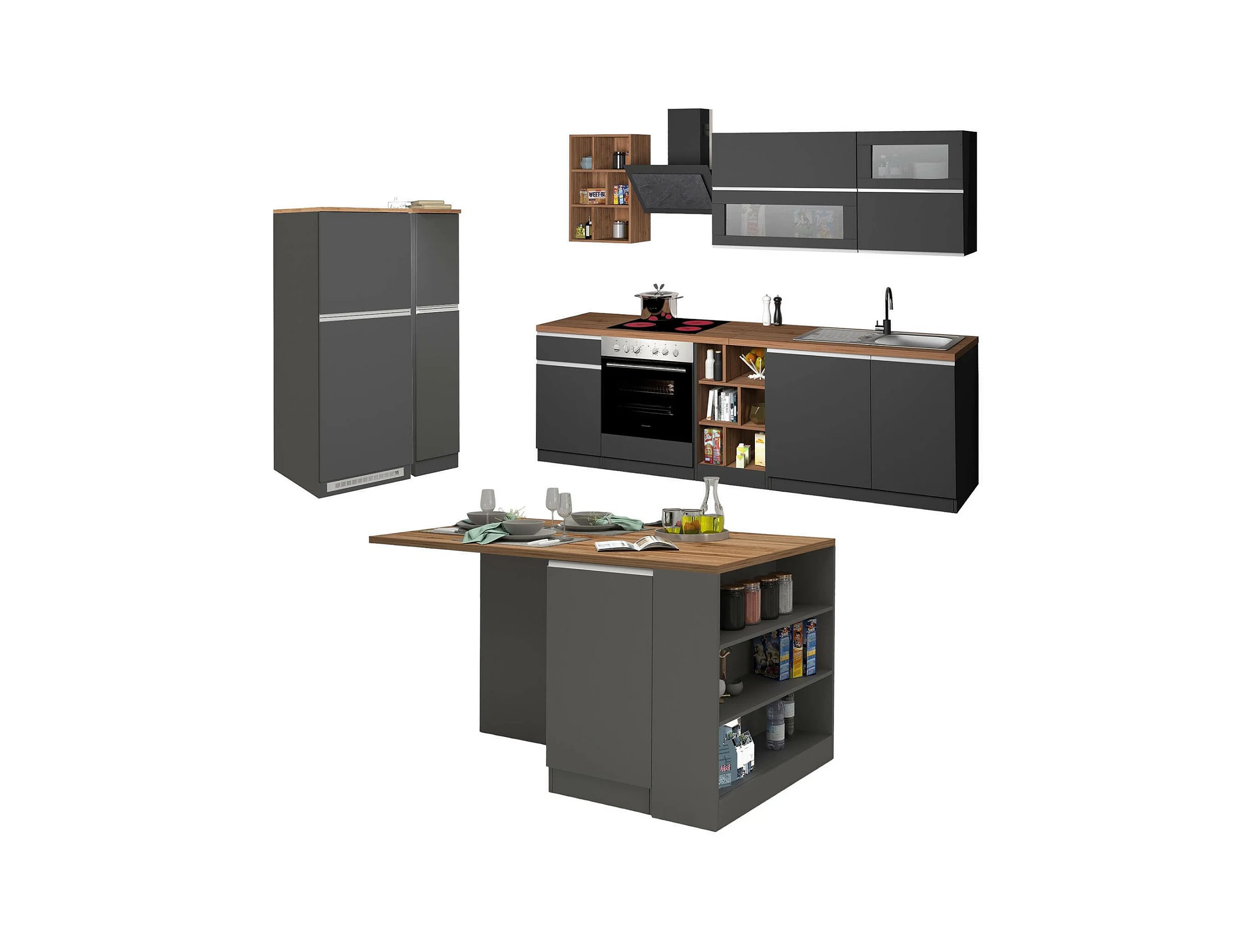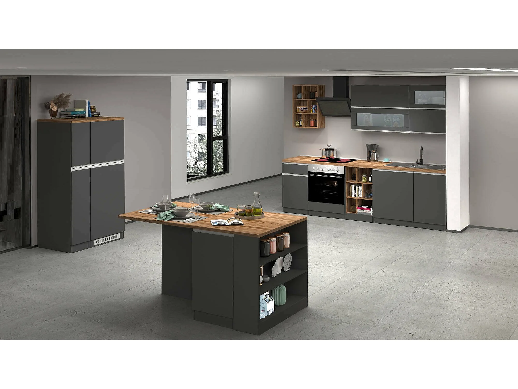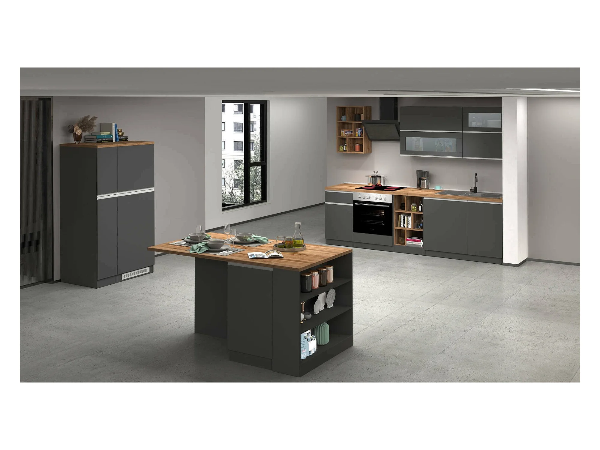 Cozinha completa Danderso, Conjunto com despensa, Armário de cozinha, Kit bloco com ilha e suporte para frigorífico, 100% Fabricado em Itália, Antracite e Carvalho
