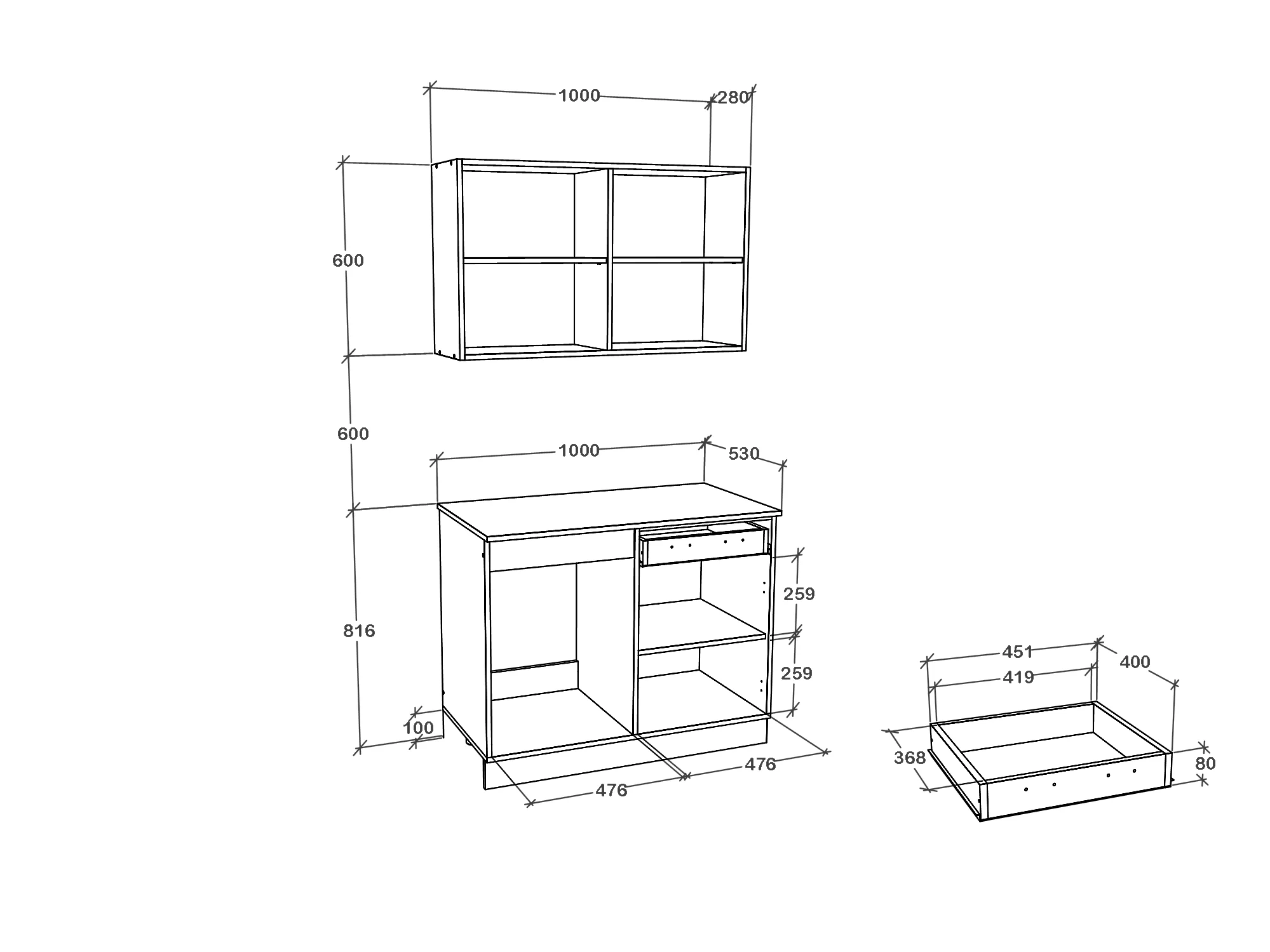 Conjunto Cozinha Berna haaus, Antracite/Branco, L 80 cm