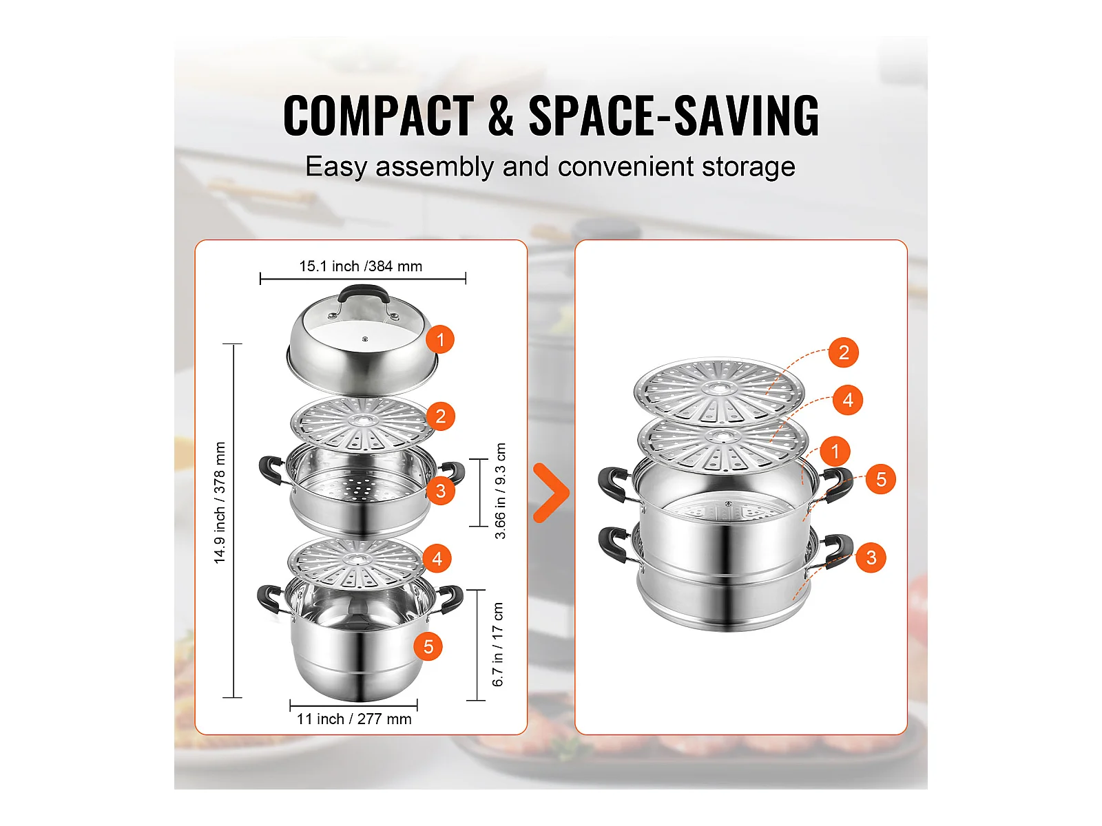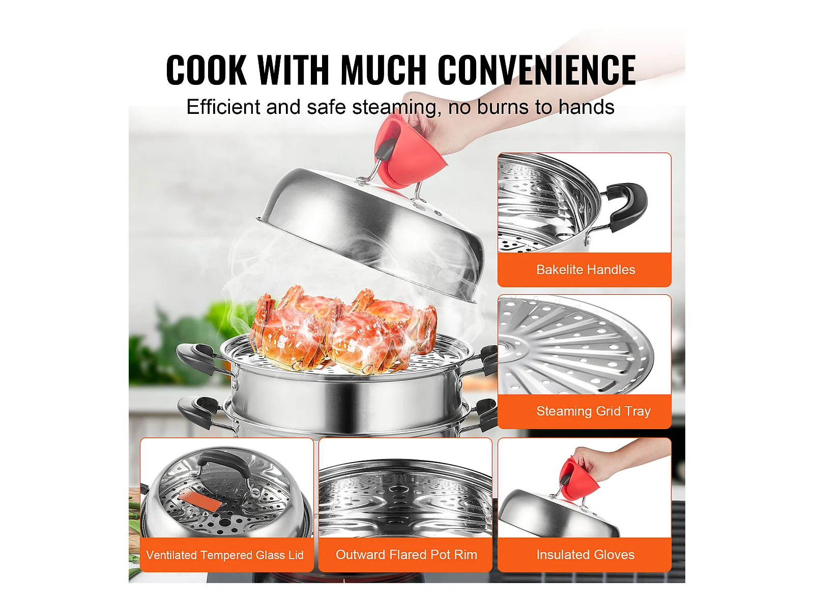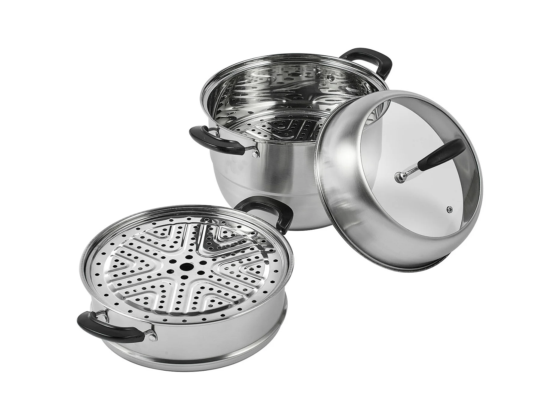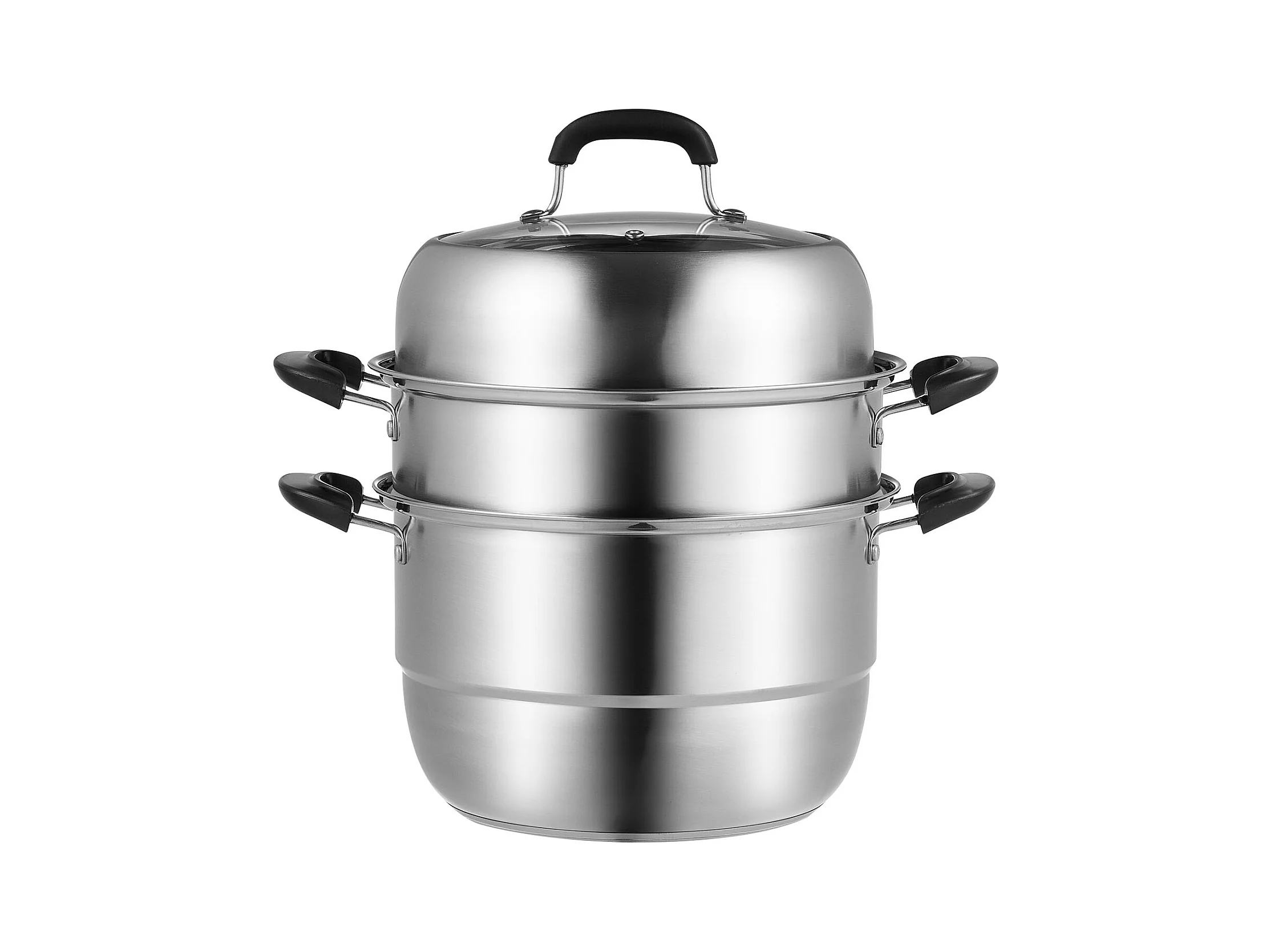 Cozinhador SucceBuy Panela a Vapor de 3 Níveis 28 cm, Panela de 8L com Cesto a Vapor para Legumes e 2 Tabuleiros - Cozinhar Saudável e Eficiente