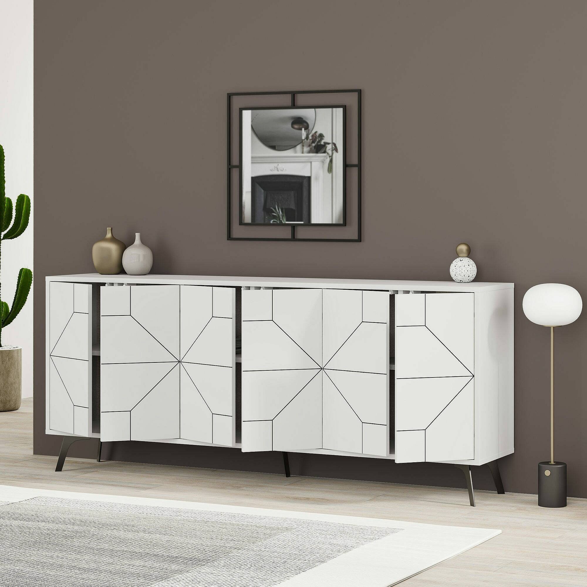 CredEnza Dlabrocc, Buffet de sala de estar, Madia de sala de estar, Despensa de cozinha, 184x35h77 cm, Branco