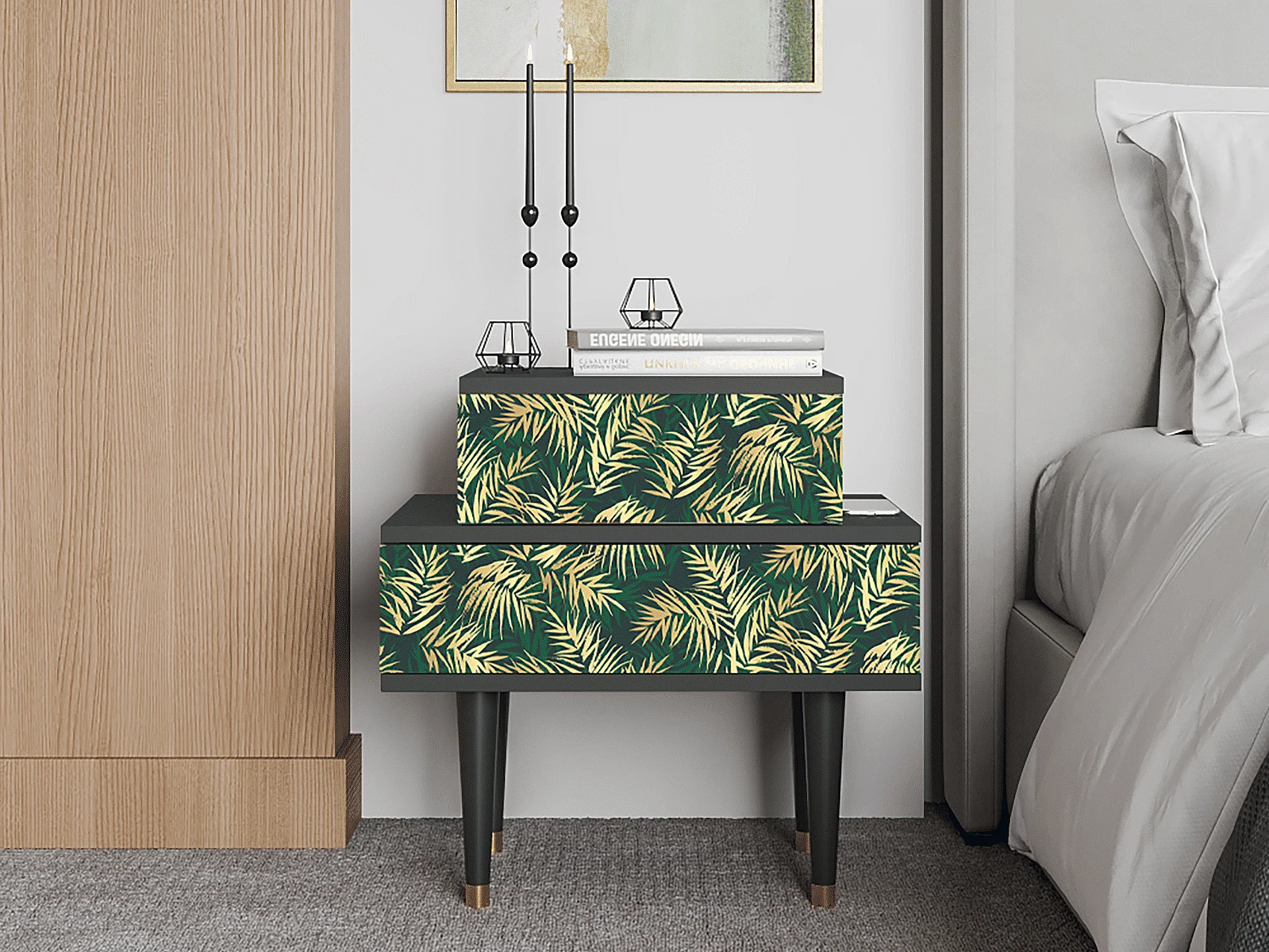 Criado-mudo - 58х58х41 cm - NS1 - Sunny Palm Tree, Antracite