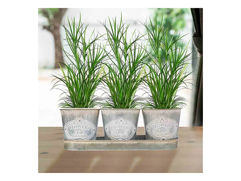3 cubos de metal verde e bandeja