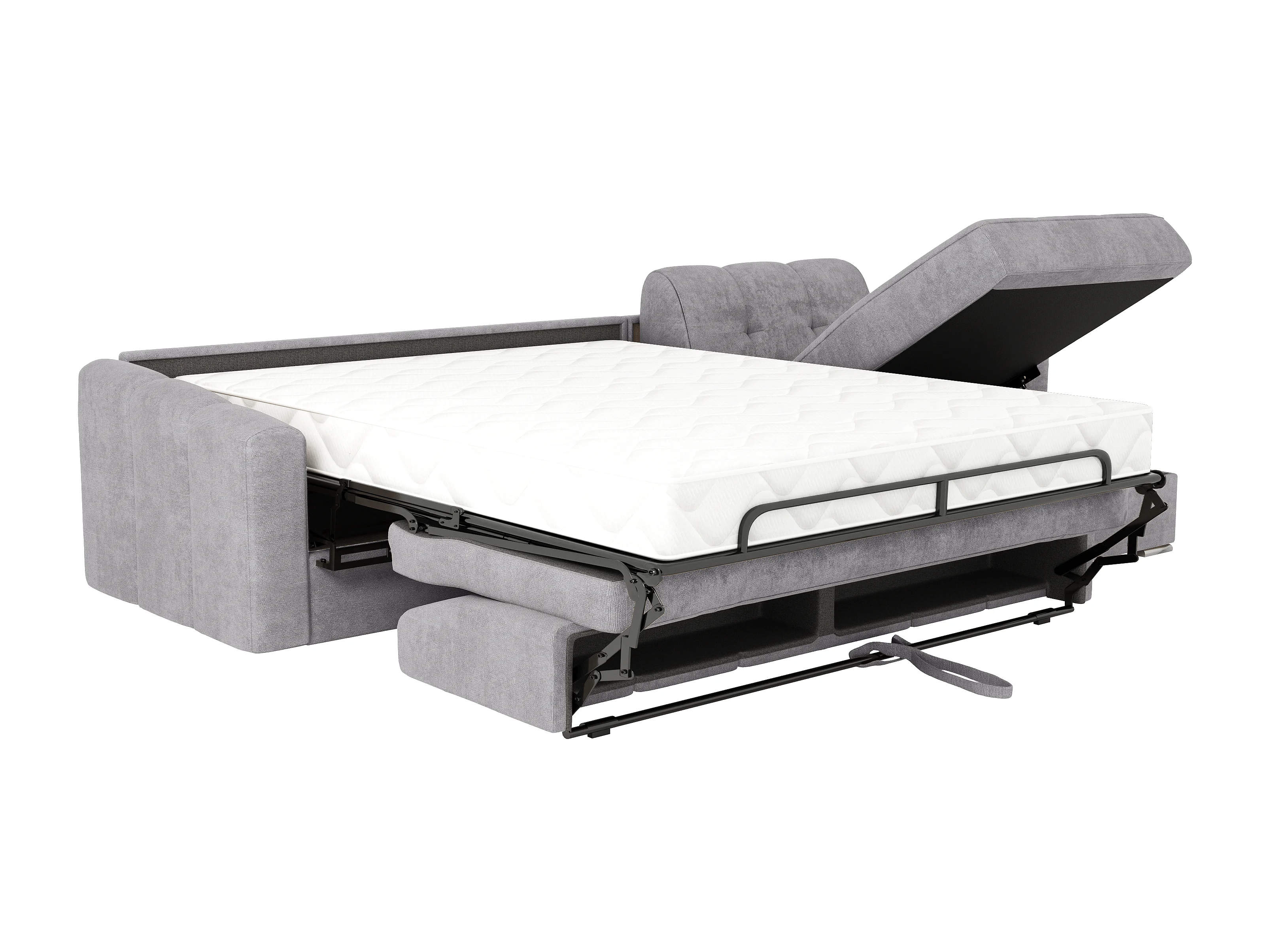Sofá de canto convertível abertura rápida em tecido texturizado cinzento claro - Cama ripas largas 140 cm - Colchão 22 cm com memória de forma - DARIELO