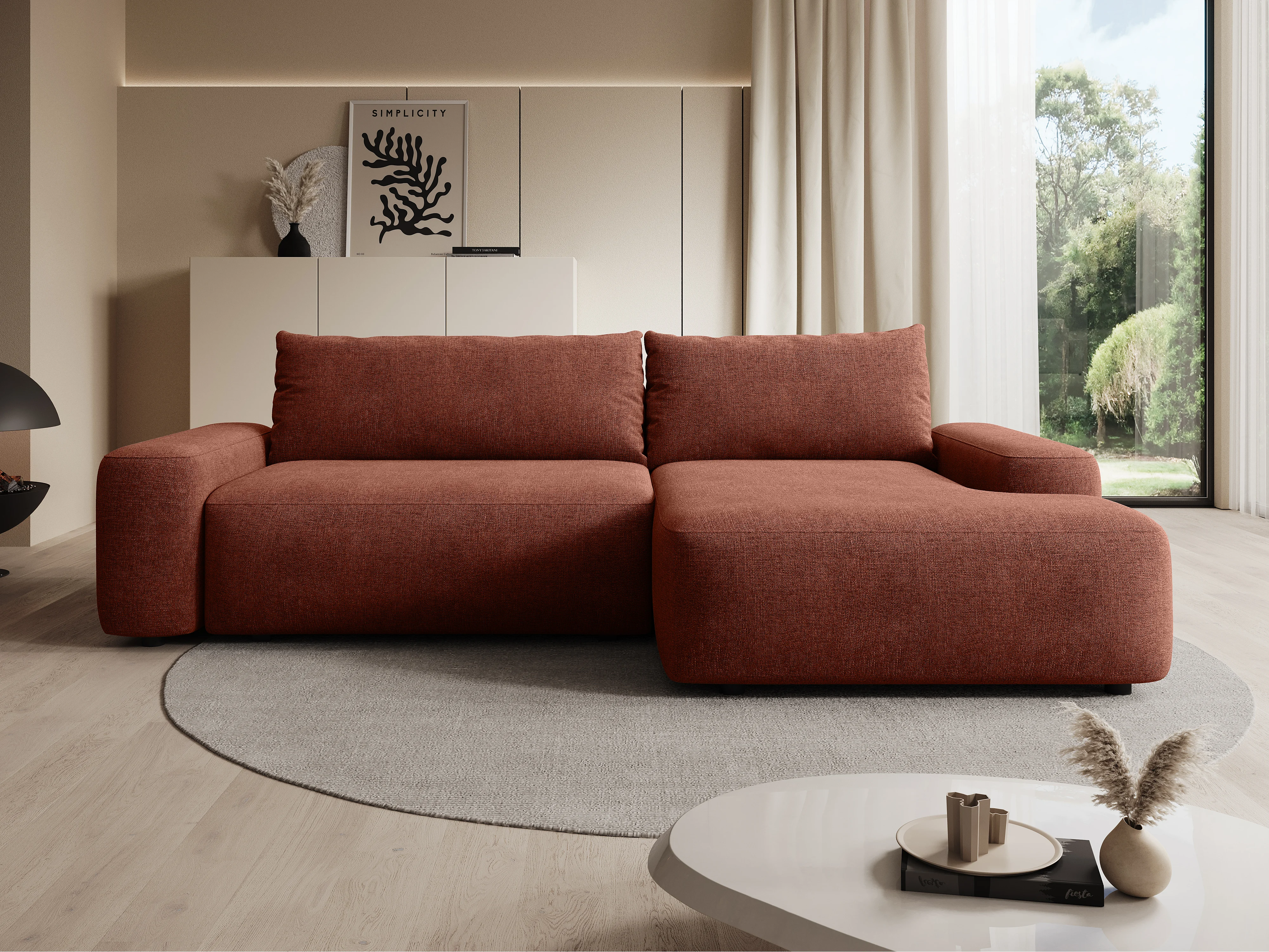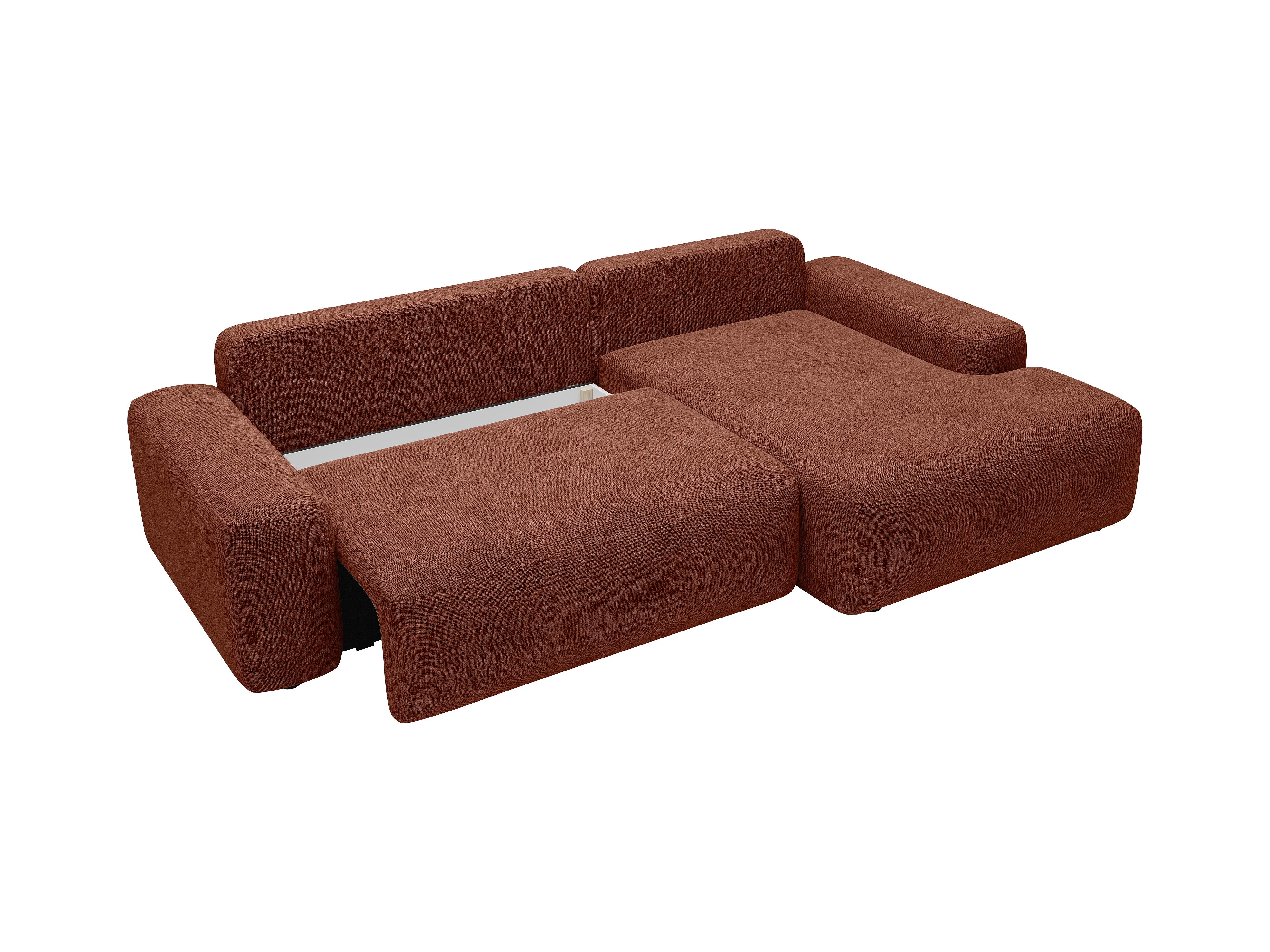 Sofá de canto direito convertível em tecido texturizado terracota - DAVISO