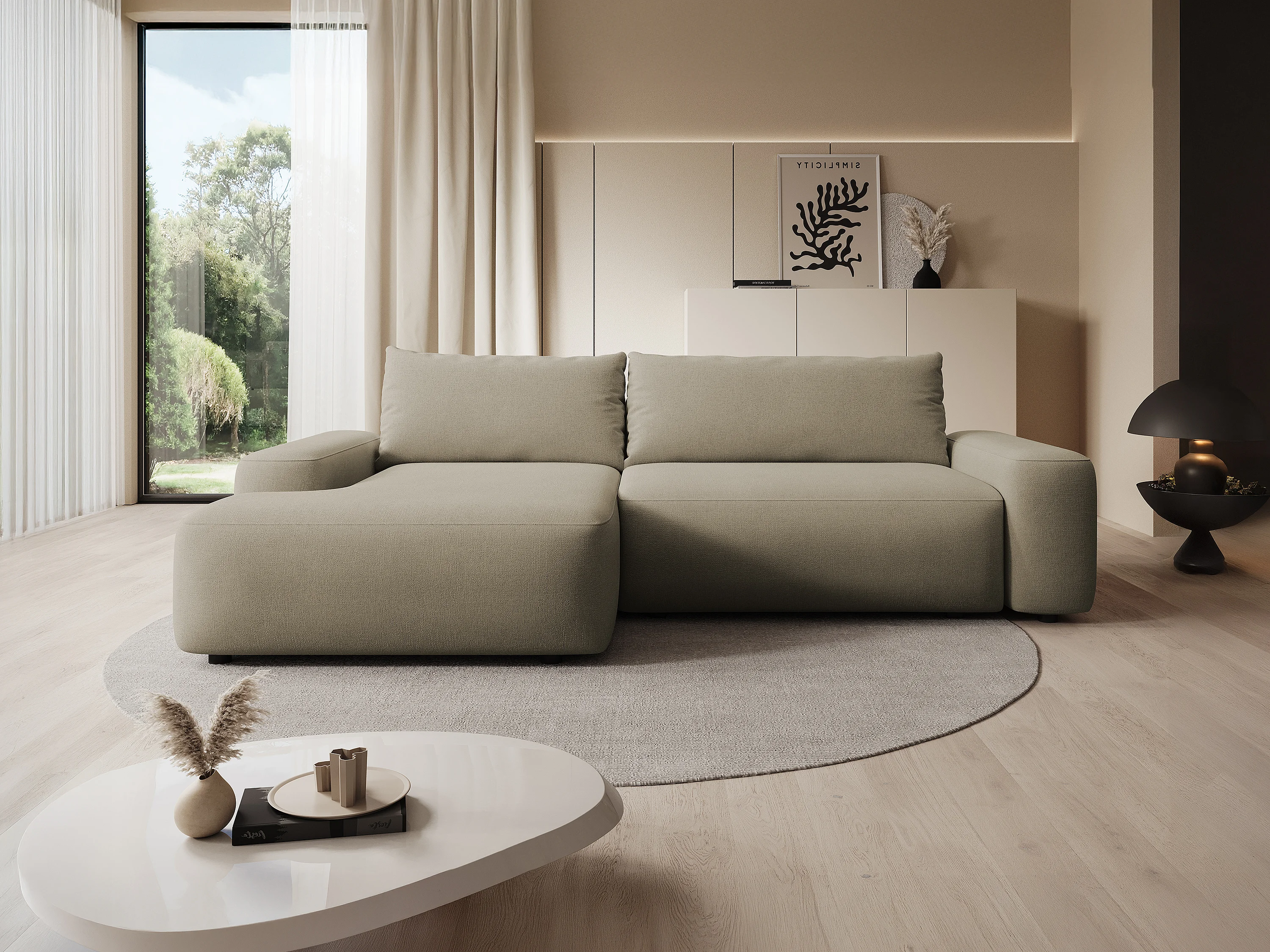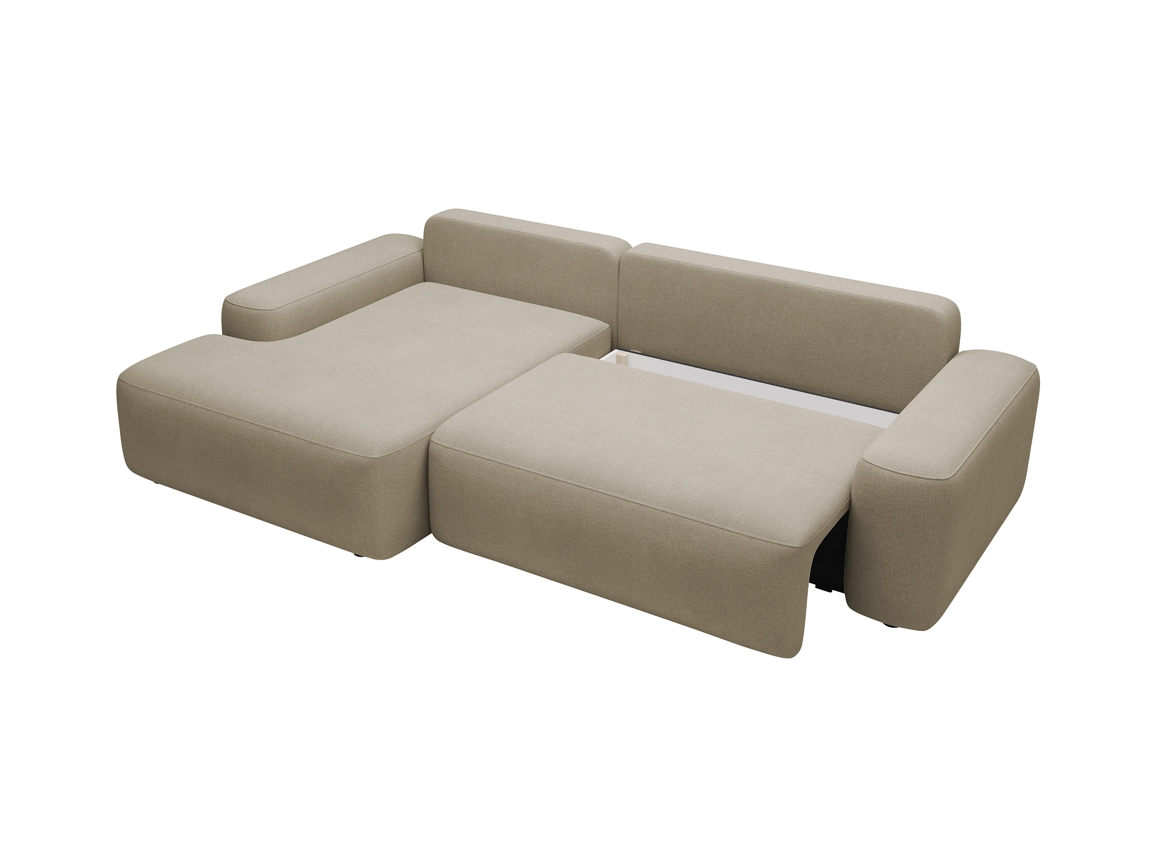 Sofá de canto esquerdo convertível em tecido texturizado taupe - DAVISO