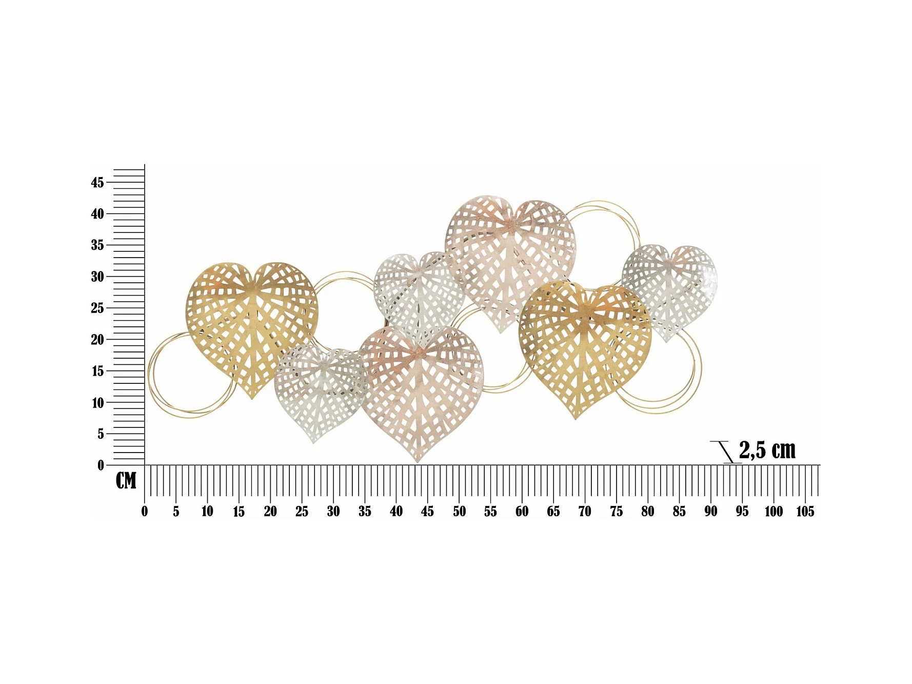 Decoração de Metal 3D Coração 22, Multicolorido, 91x2,5x39,5 cm, Epikasa