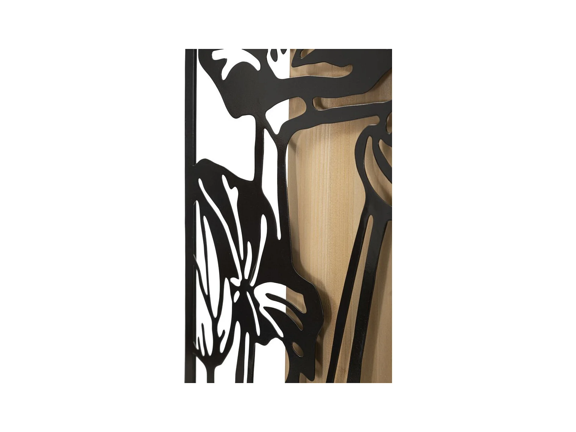 Decoração em Metal e Madeira Flores 55, Castanho, 60x2x90 cm, Epikasa