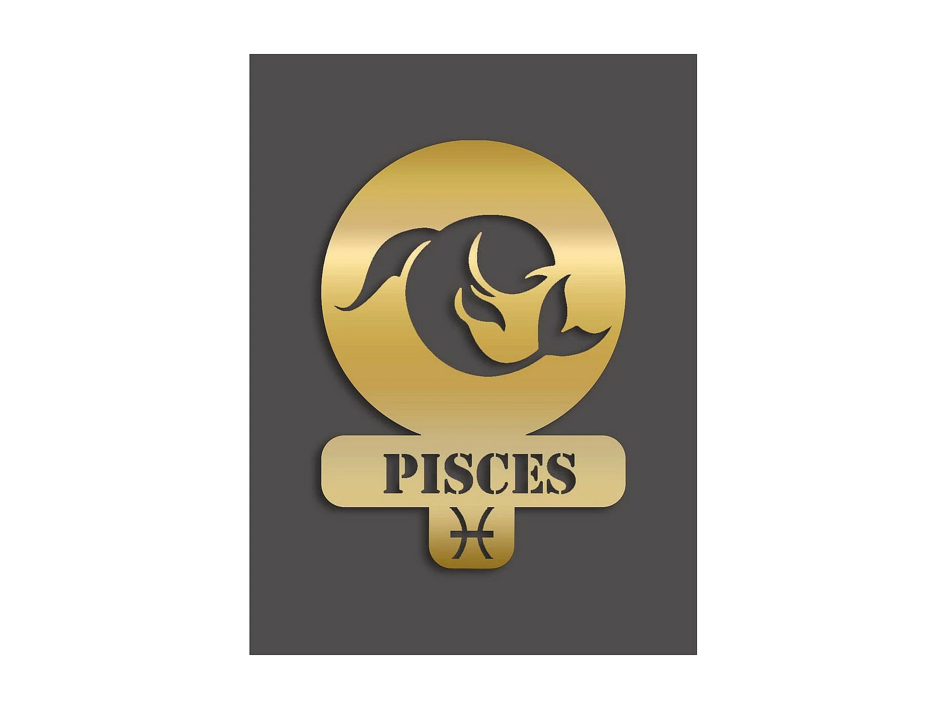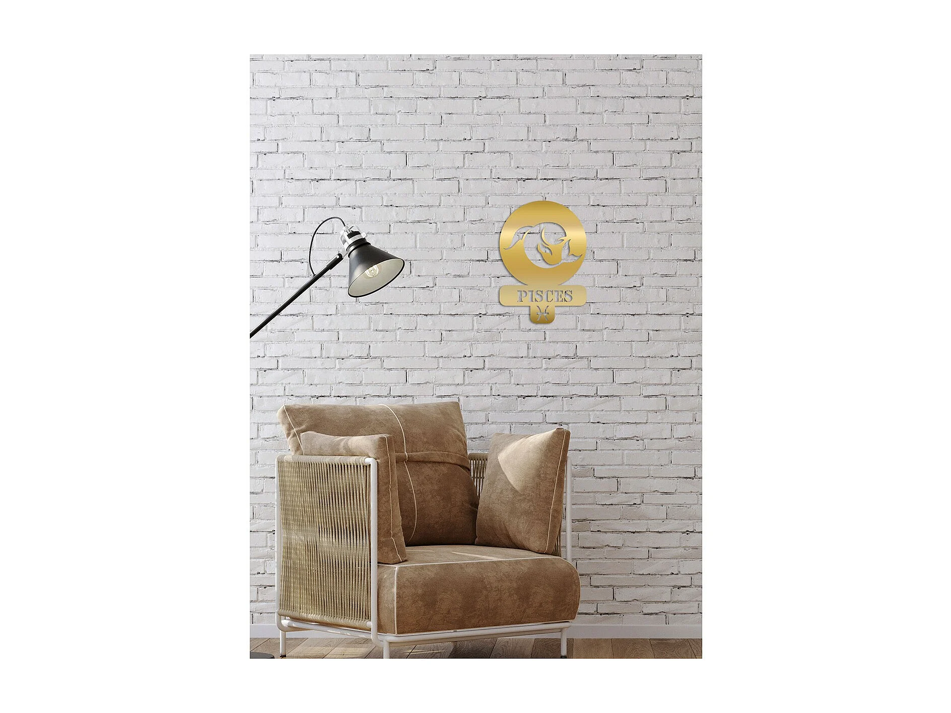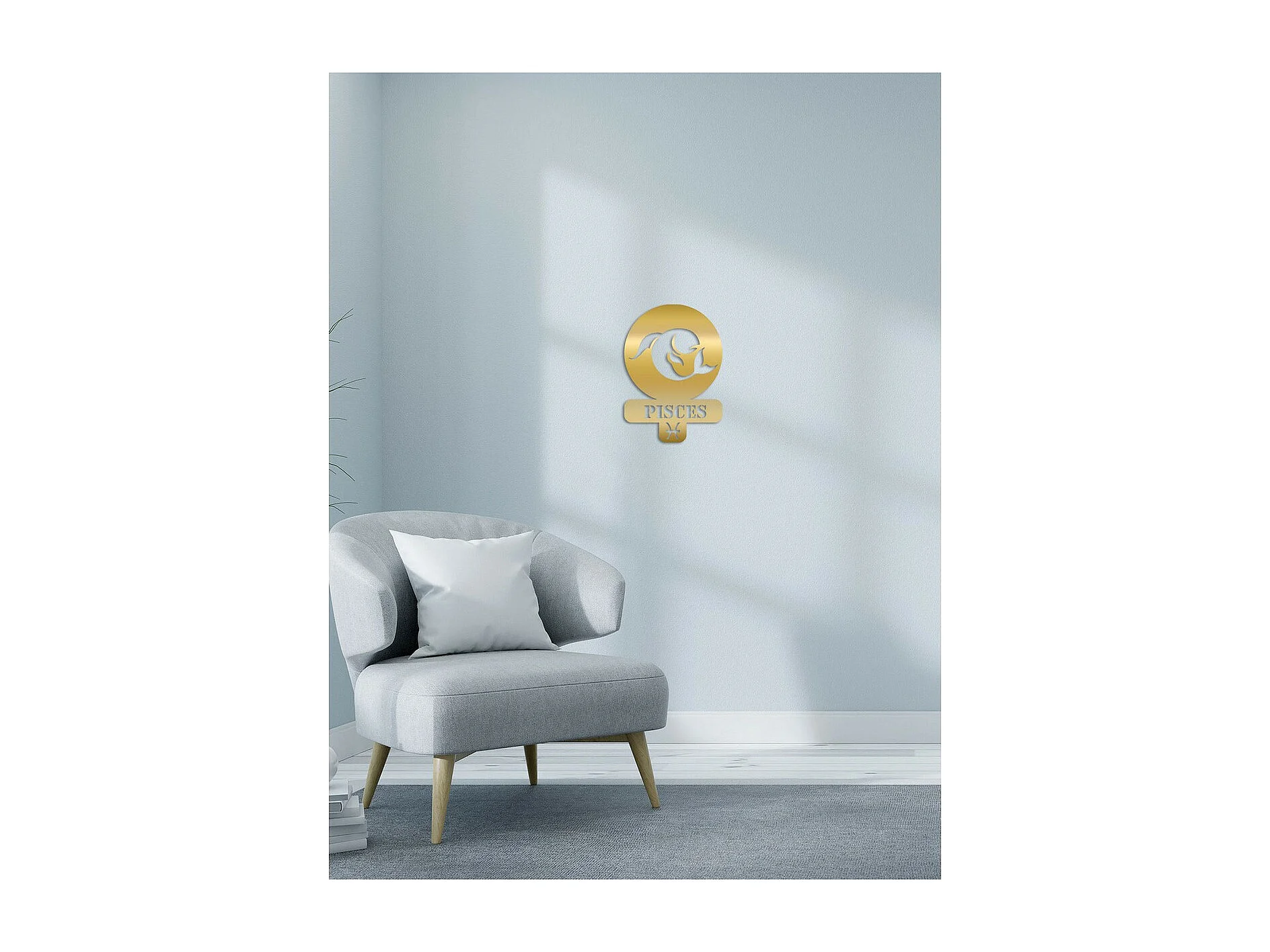 Decoração em Metal Horóscopo 5 para Peixes, Ouro, 36x0,15x50 cm, EPIKASA