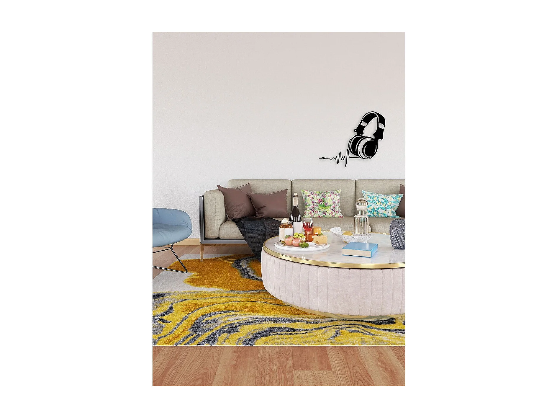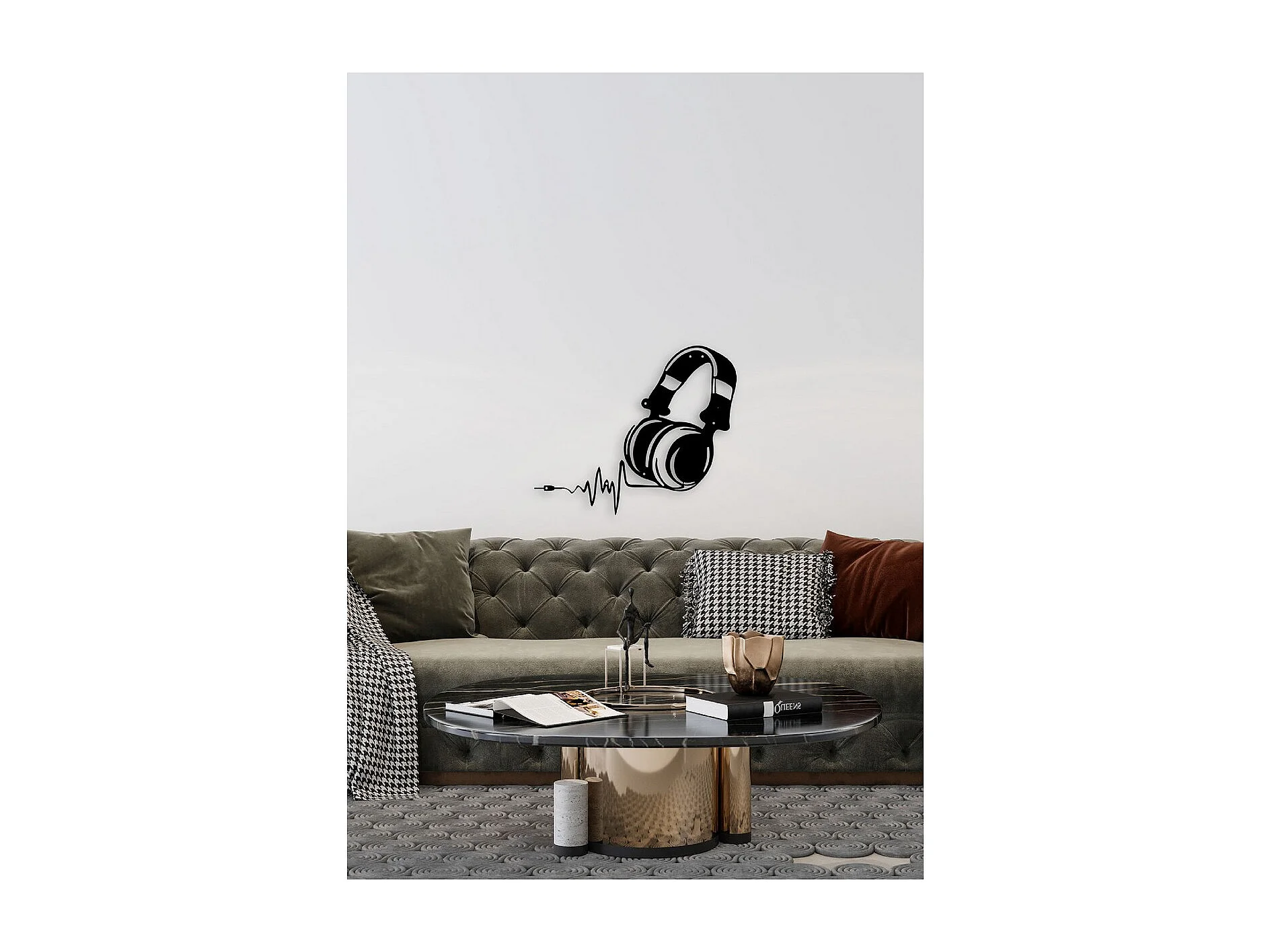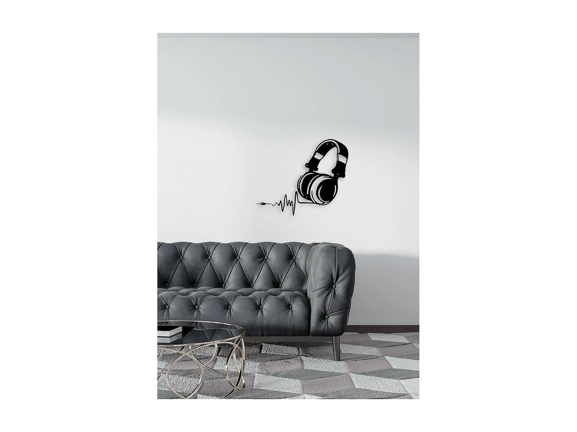 Decoração em Metal Auscultadores de Música 1, Preto, 41x1,5x35 cm, EPIKASA