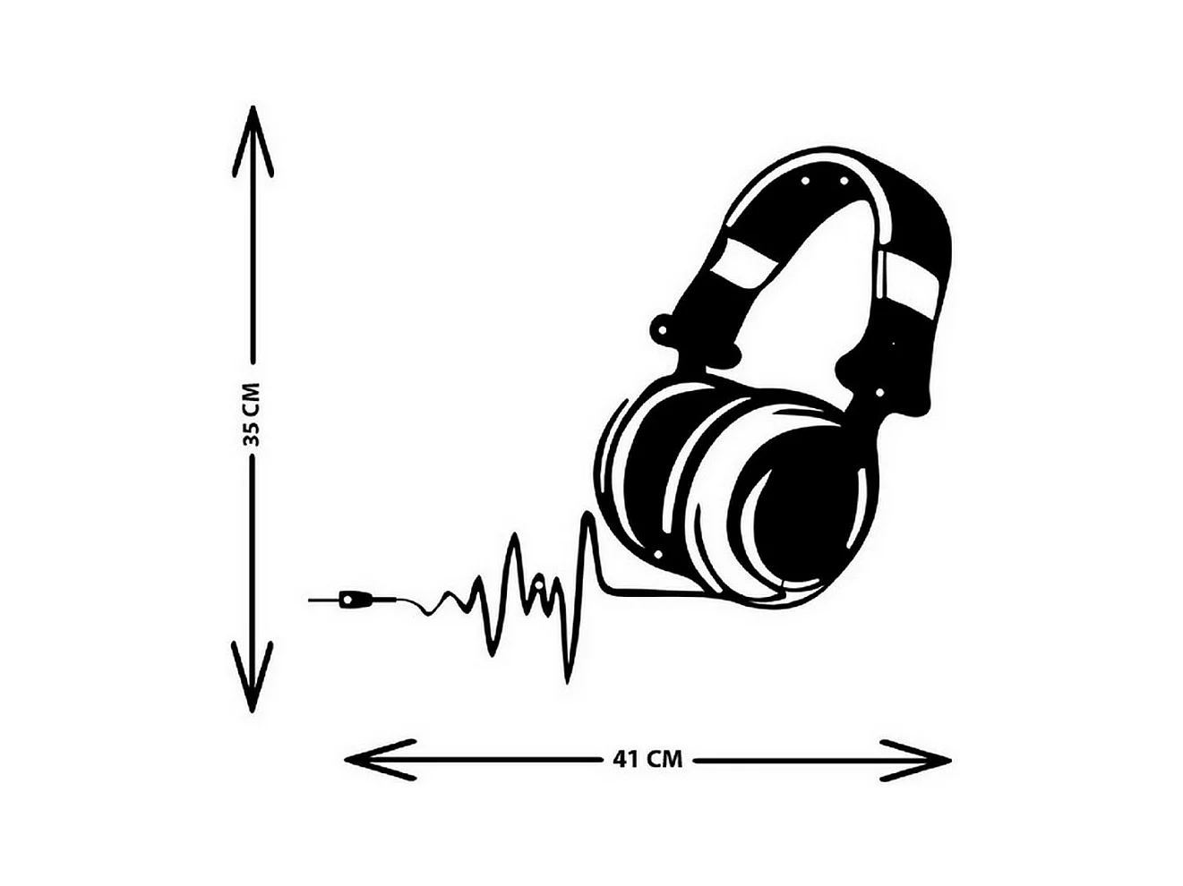 Decoração em Metal Auscultadores de Música 2, Prata, 41x1,5x35 cm, EPIKASA