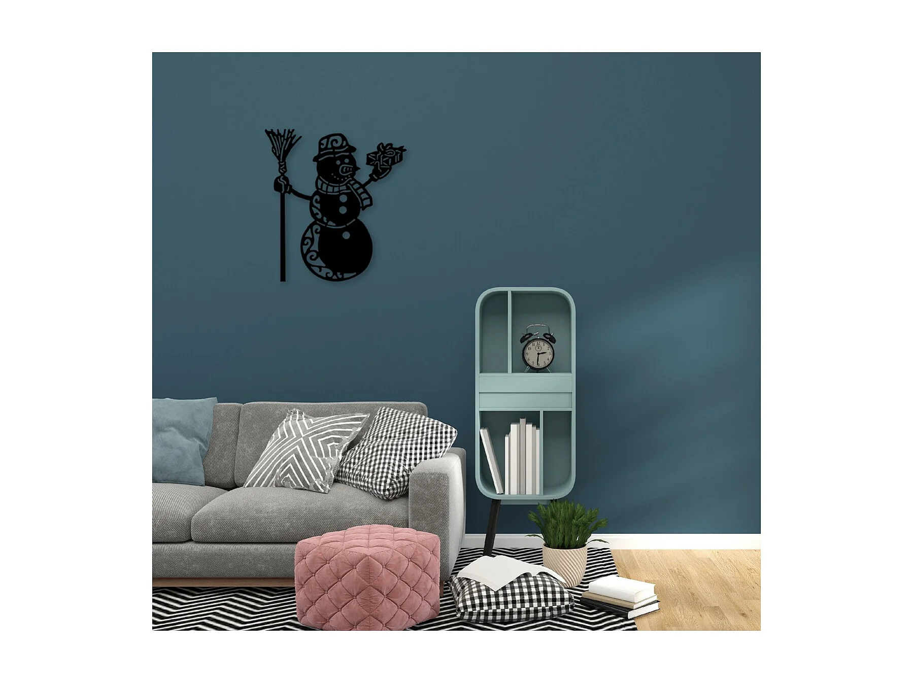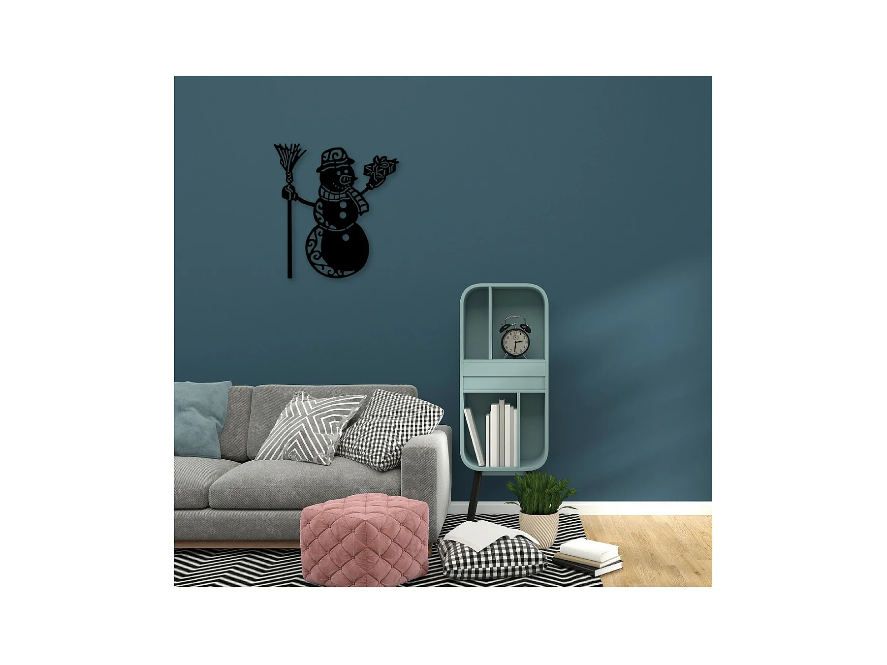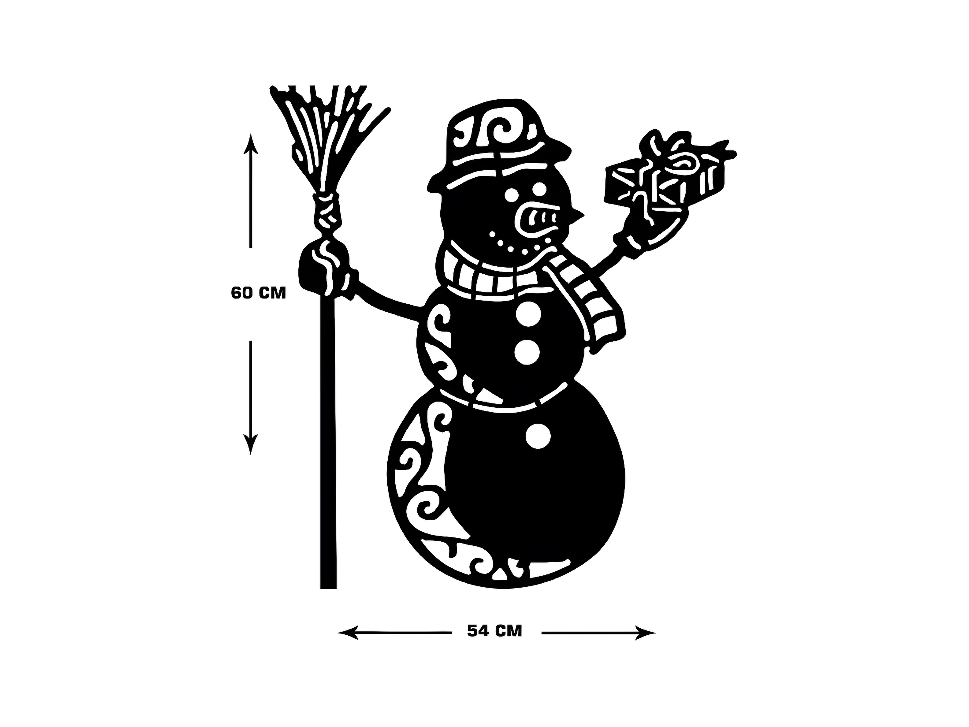 Decoração em Metal Boneco de Neve, Preto, 55x1,5x60 cm, EPIKASA