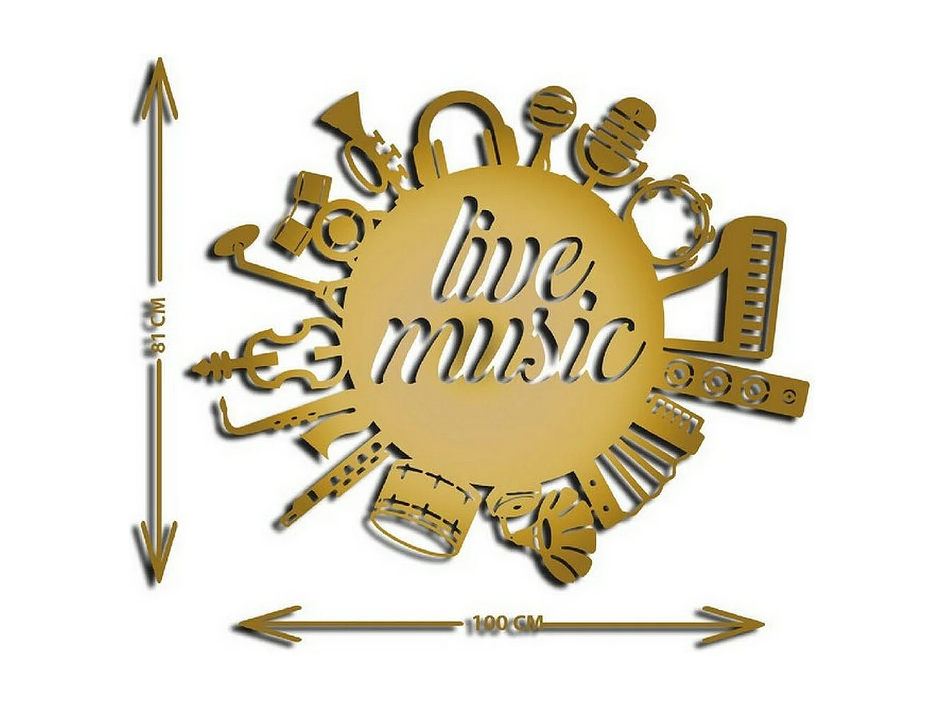 Decoração em Metal Live Music 1, Ouro, 100x1,5x81 cm, EPIKASA