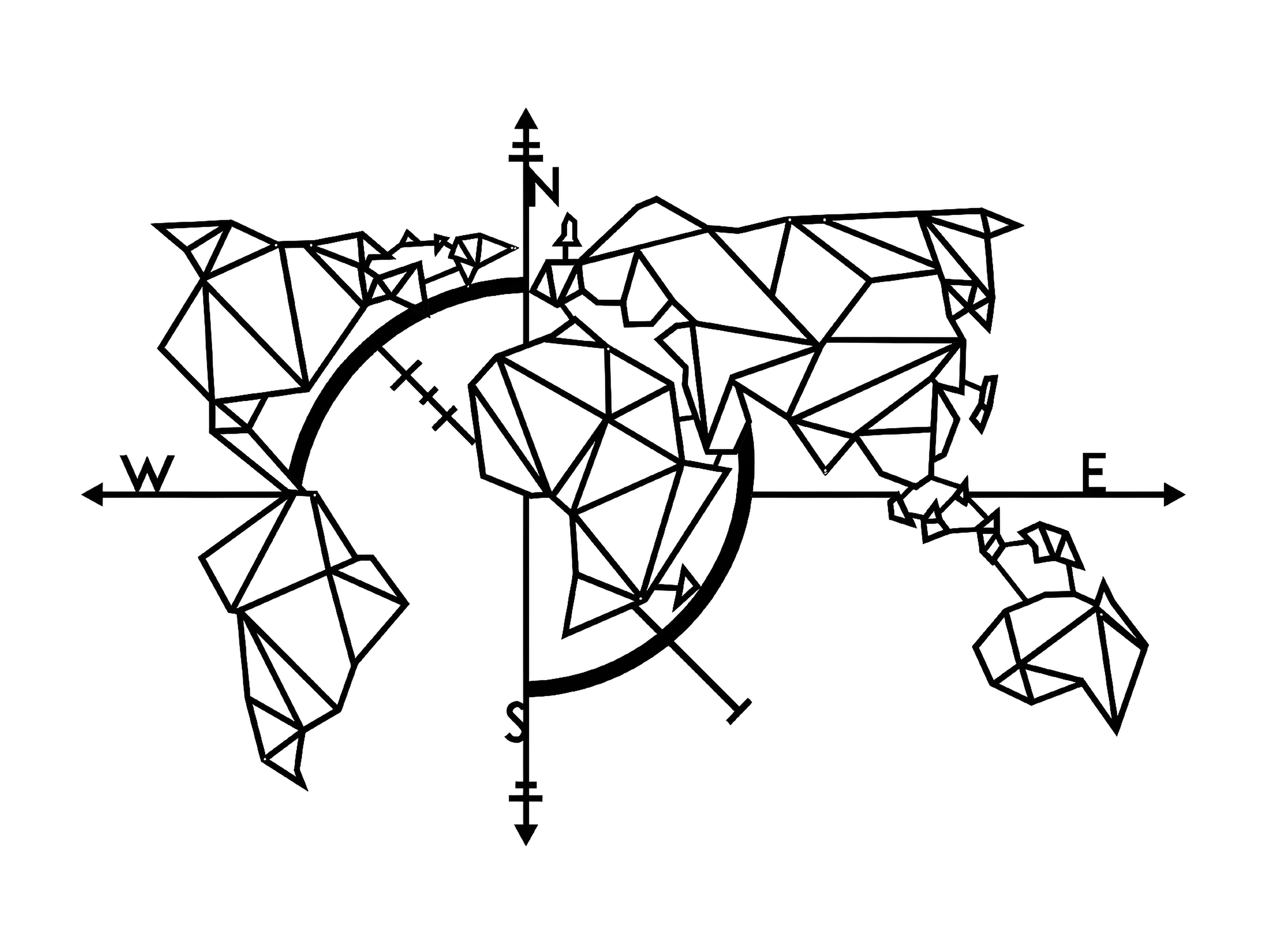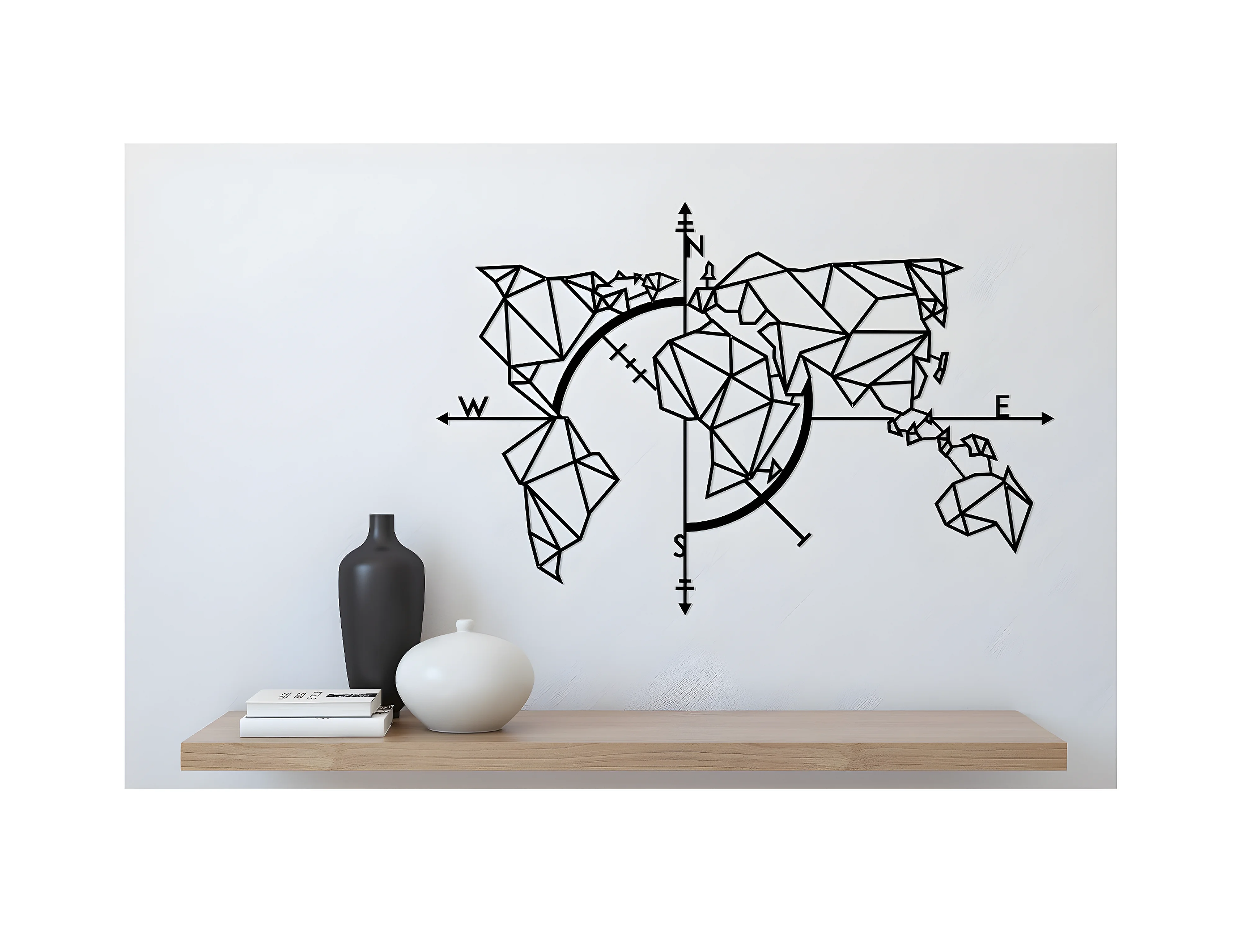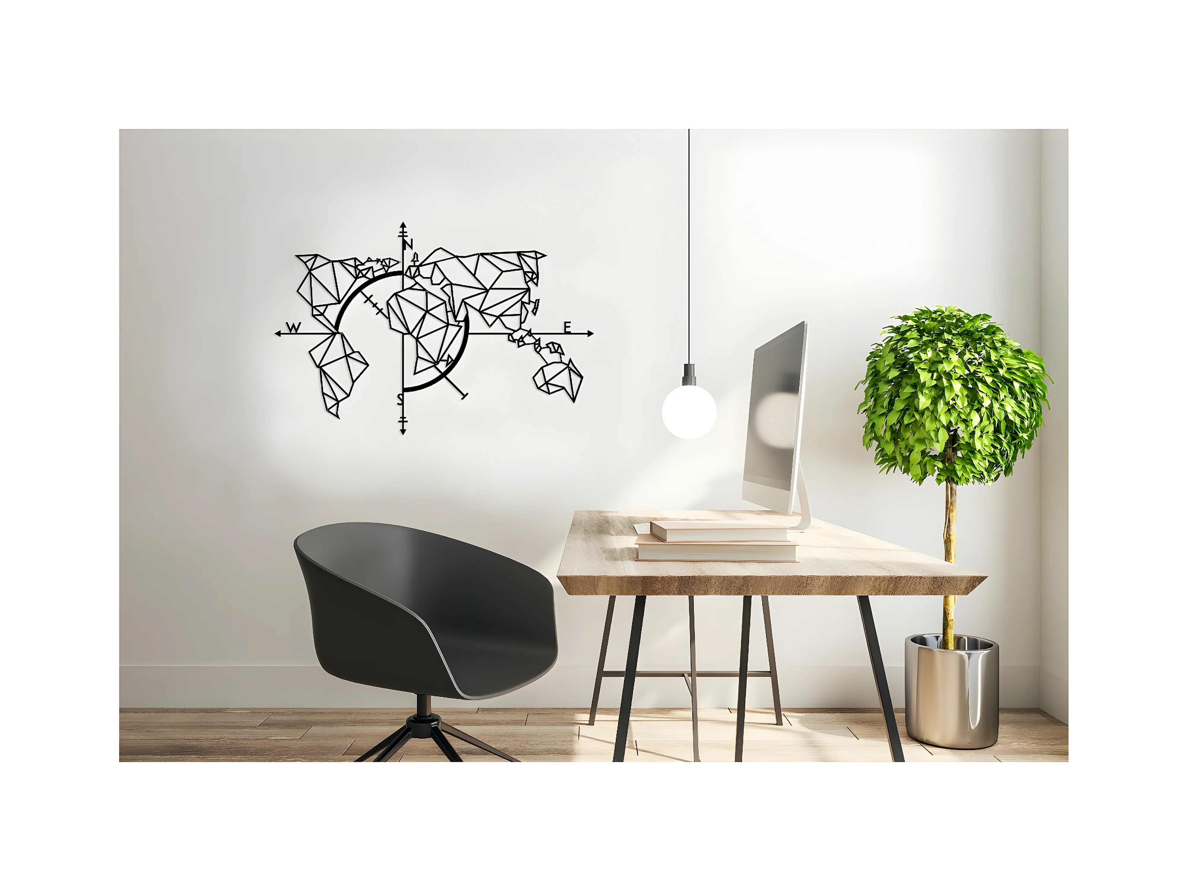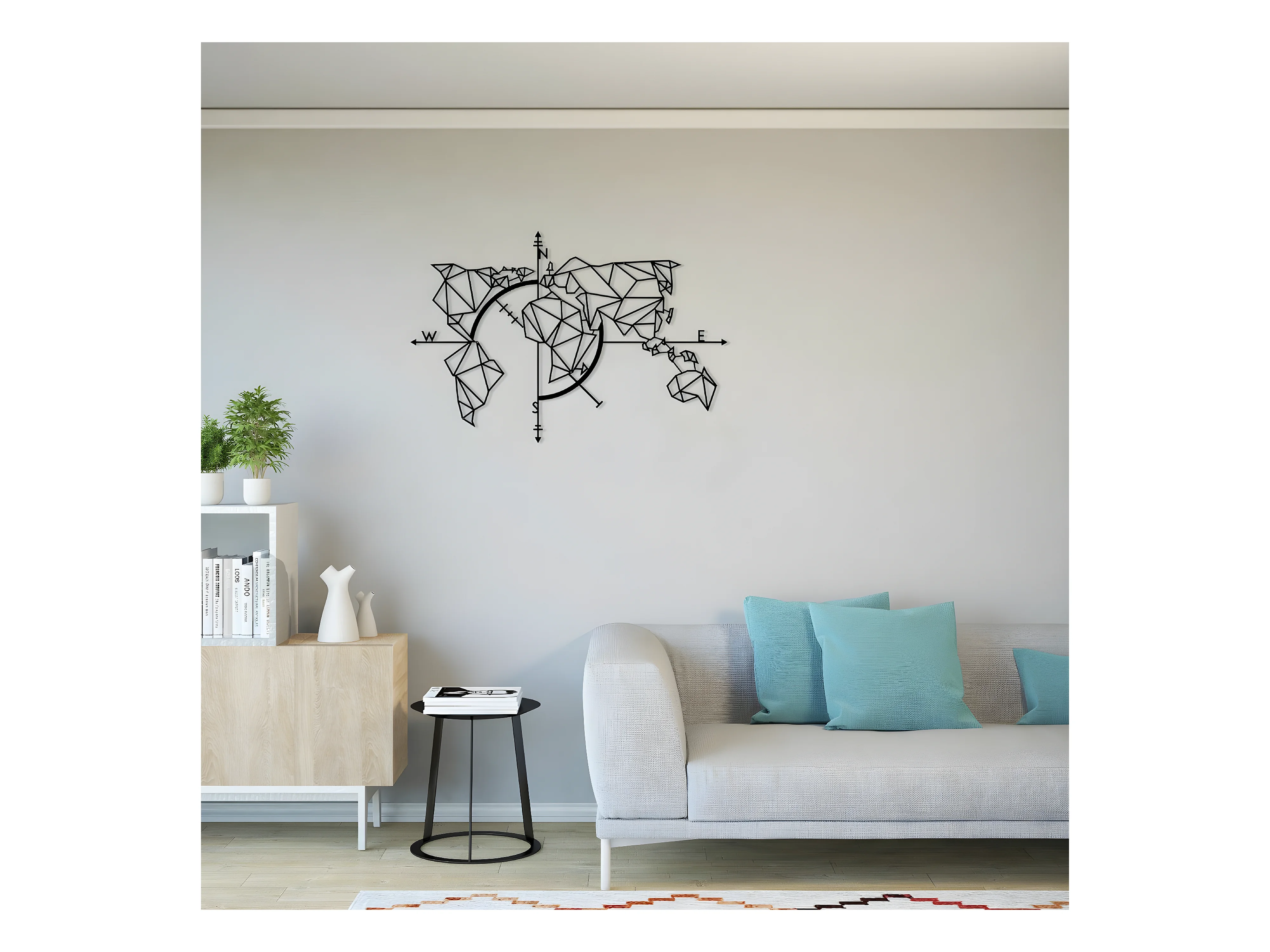 Decoração em Metal Mapa do Mundo 20, Preto, 111x1,5x74 cm, EPIKASA