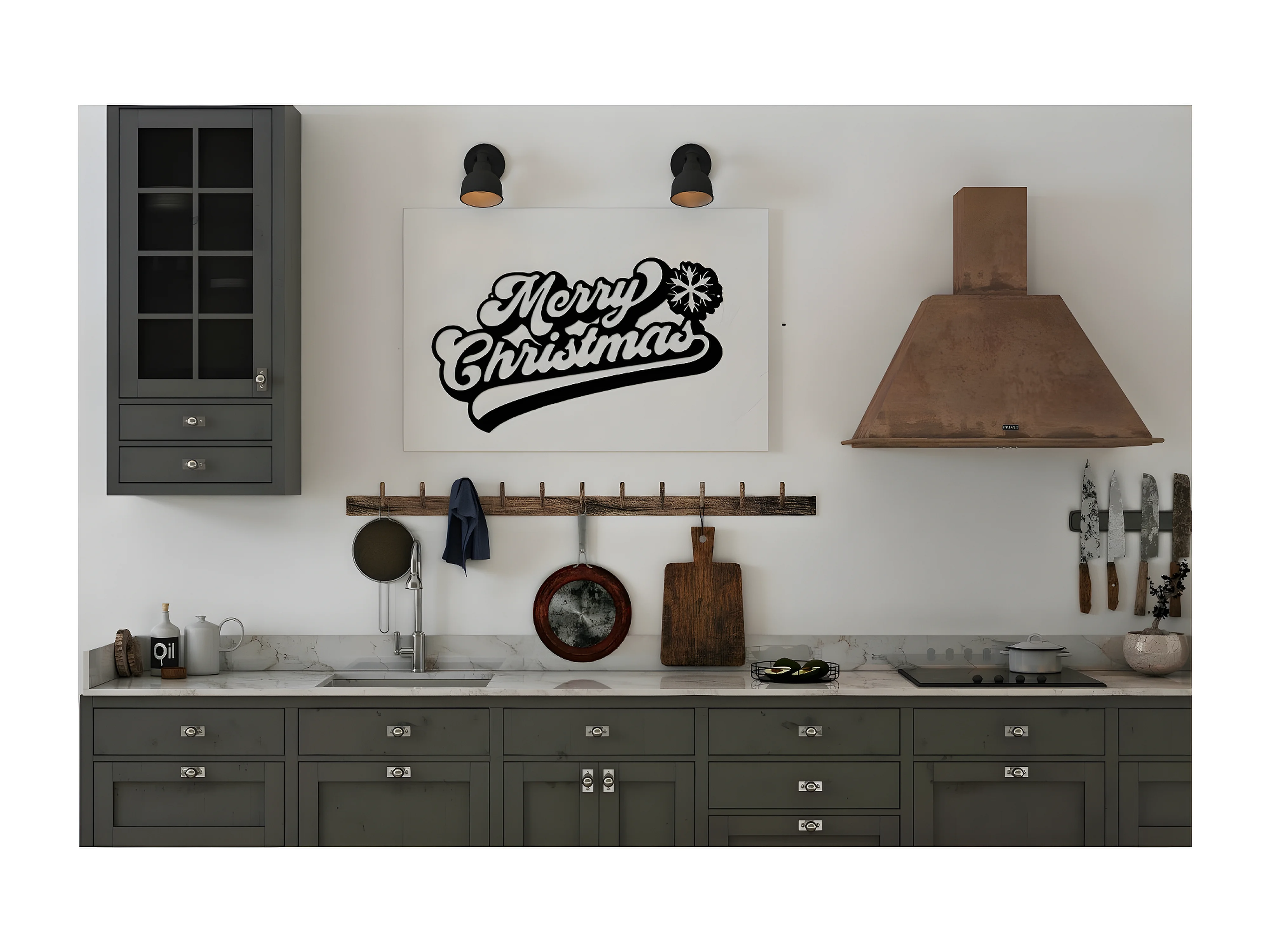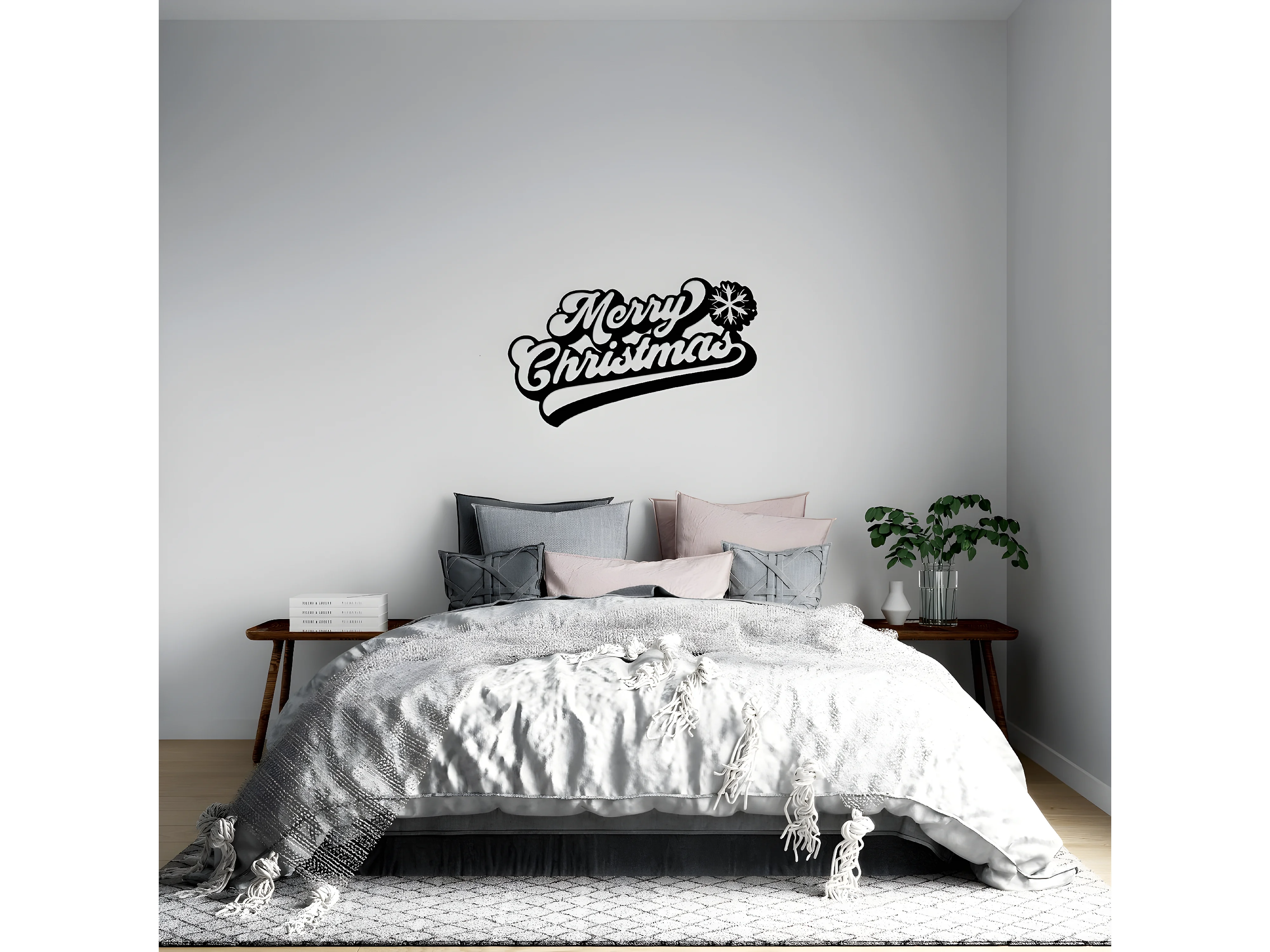 Decoração em Metal Feliz Natal 7, Preto, 50x1,5x30 cm, EPIKASA