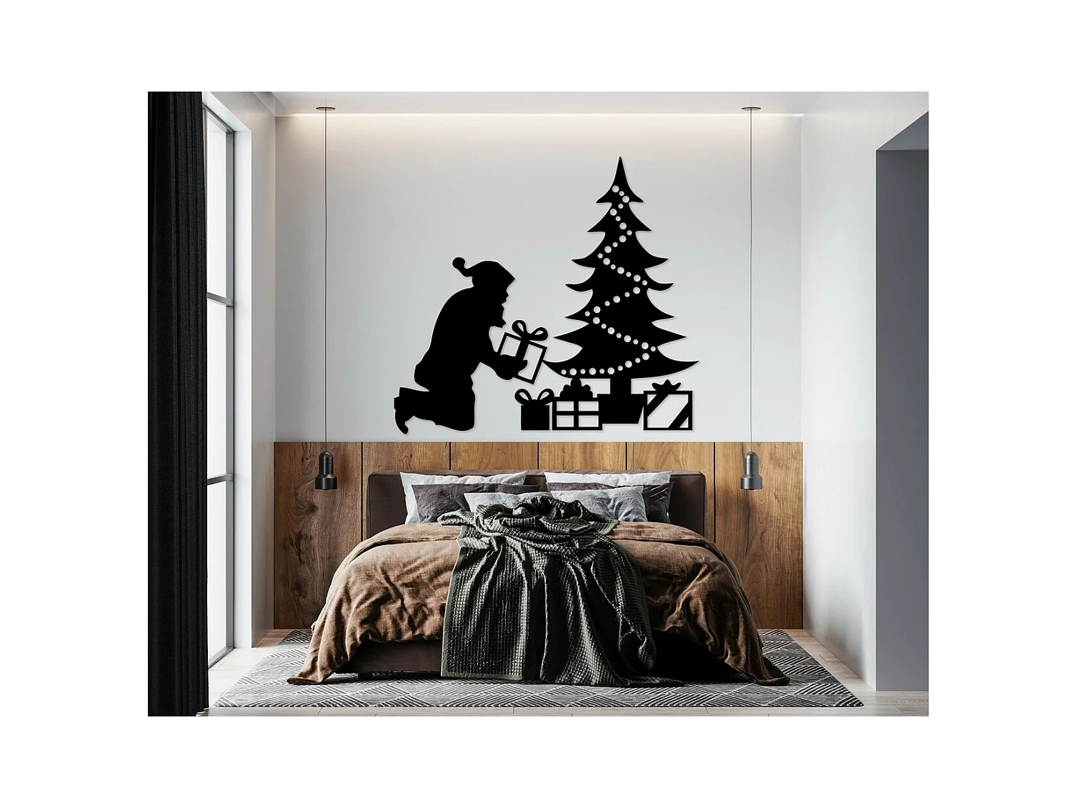 Decoração em Metal Pai Natal, Preto, 90x1,5x82 cm, EPIKASA