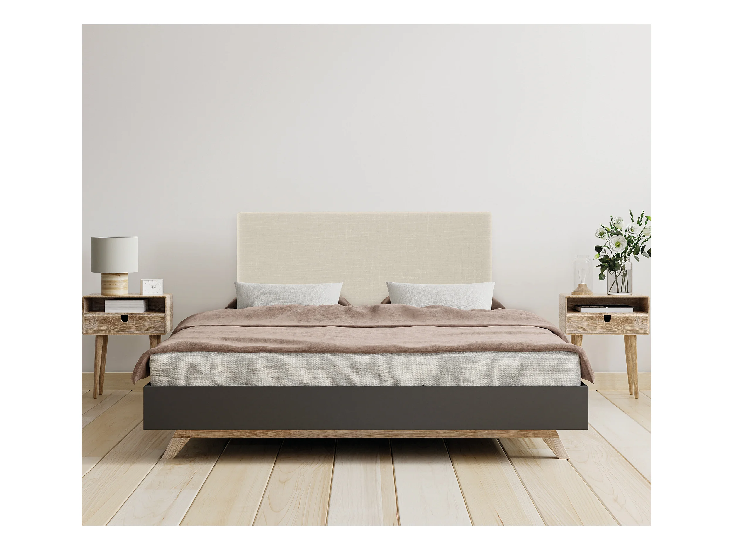Cabeceira e ponte de cama estilo escandinavo
