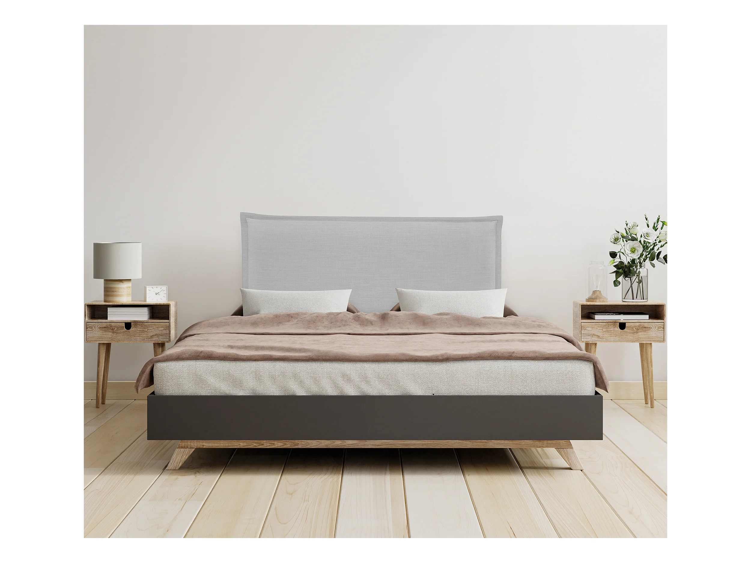Cabeceira e ponte de cama estilo escandinavo