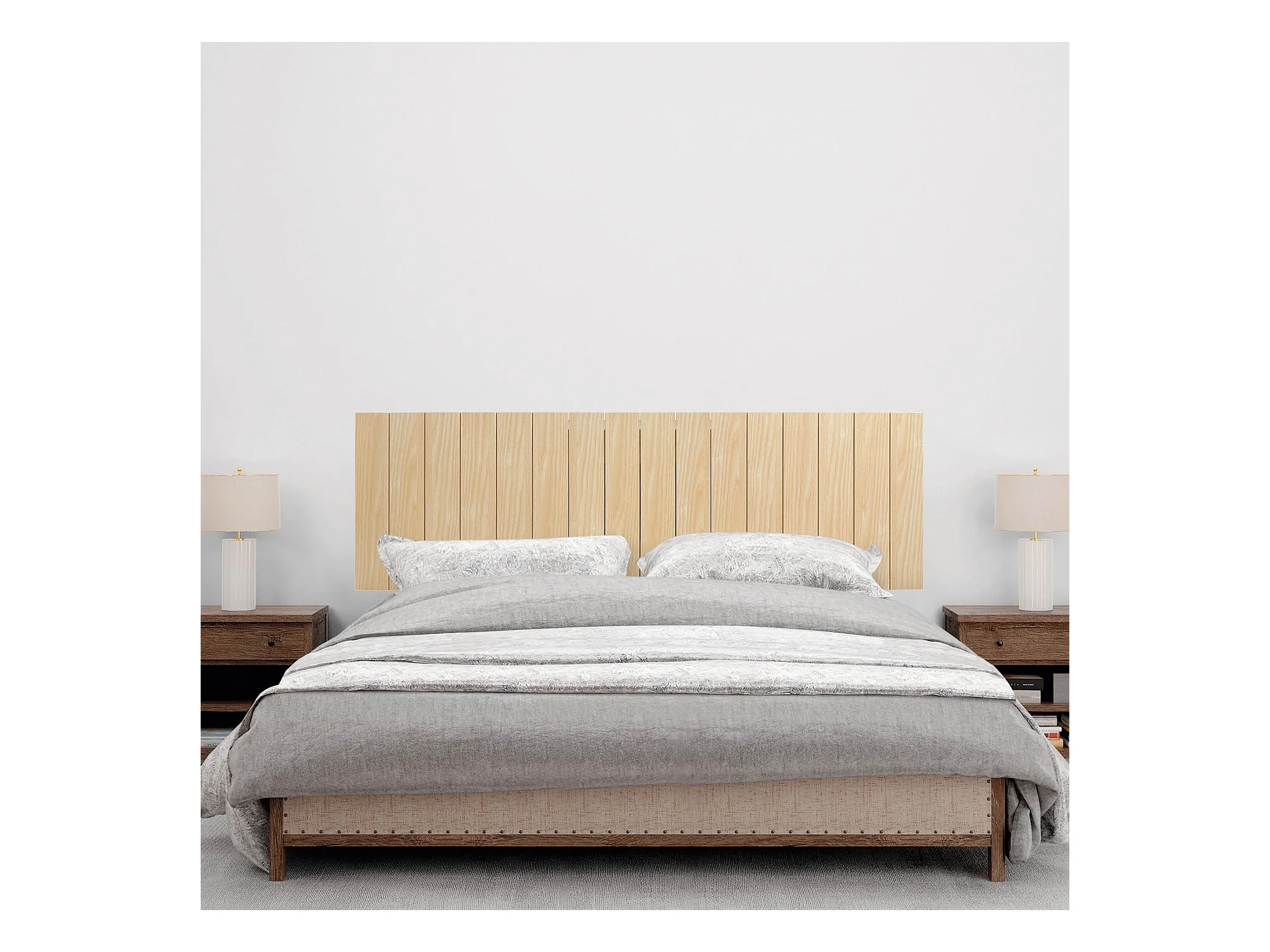 Cabeceira e ponte de cama estilo escandinavo