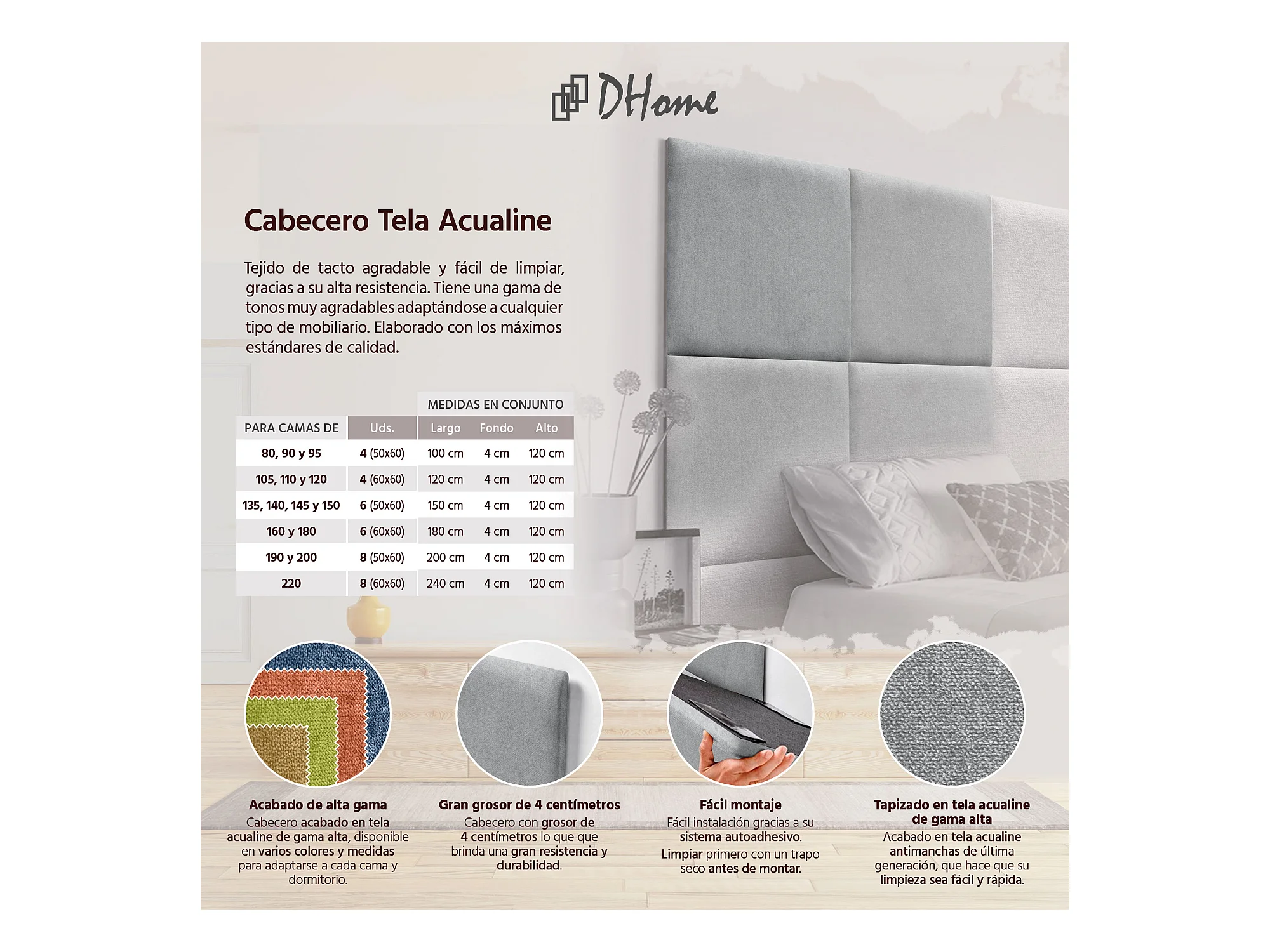 DHOME Cabeceira estofada em tecido aculino composto por painéis de cama intercambiáveis autoadesivos acolchoados para quarto (Cinza, 110cm)