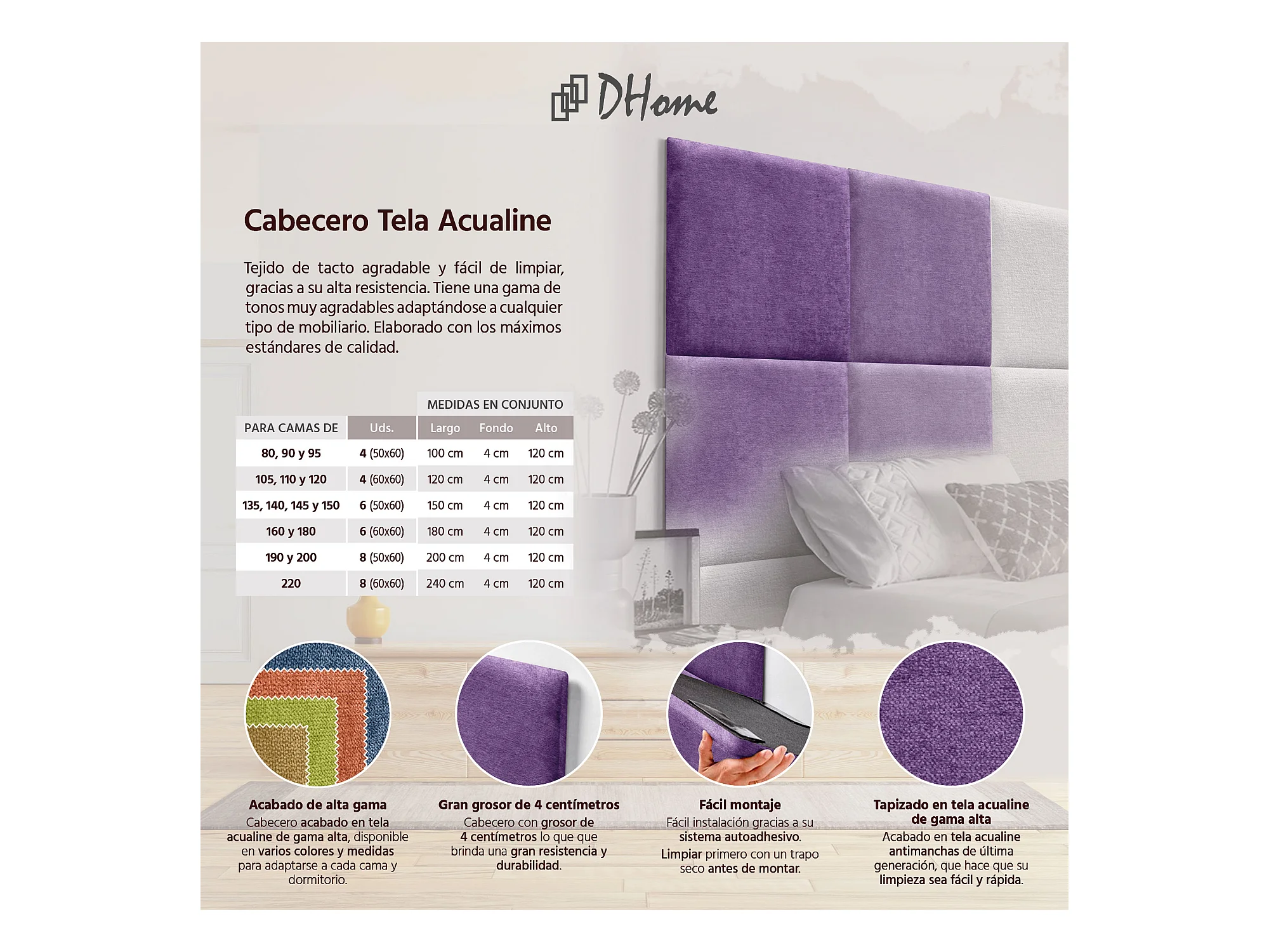 DHOME Cabeceira estofada em tecido aculino composto por painéis de cama intercambiáveis autoadesivos acolchoados para quarto (Lilás, 160cm)