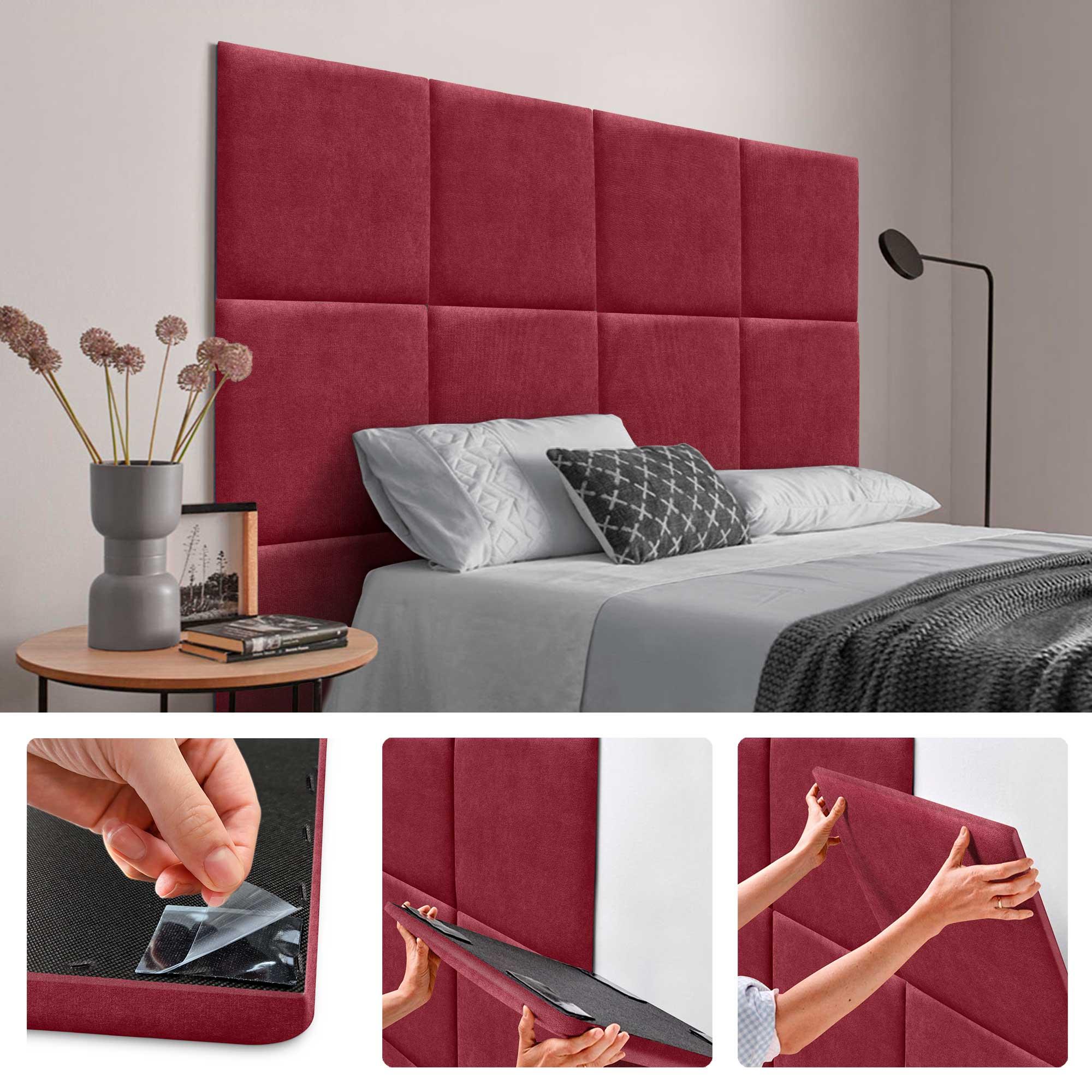 DHOME Painéis Estofados de Tecido Autoadesivos para Parede Acústicos Absorventes Proteção contra Impactos Cabeceiras Decoração (Vermelho, 60x60cm)