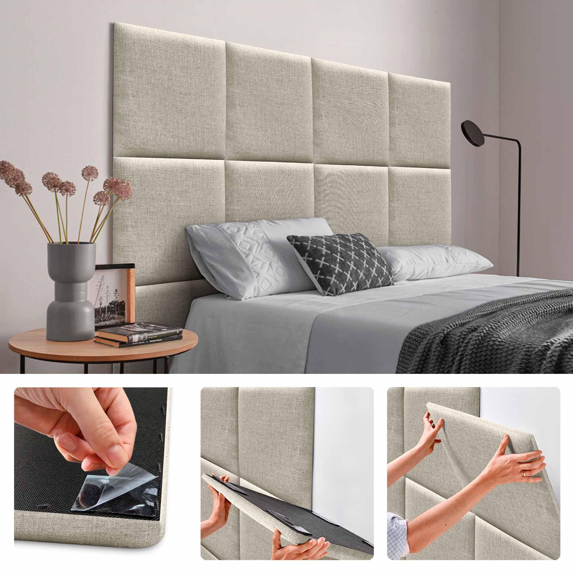 DHOME Painéis Estofados de Linho Autoadesivos para Parede Acústicos Absorventes Proteção de Impactos Cabeceiras Decoração (Bege, 60x60cm)