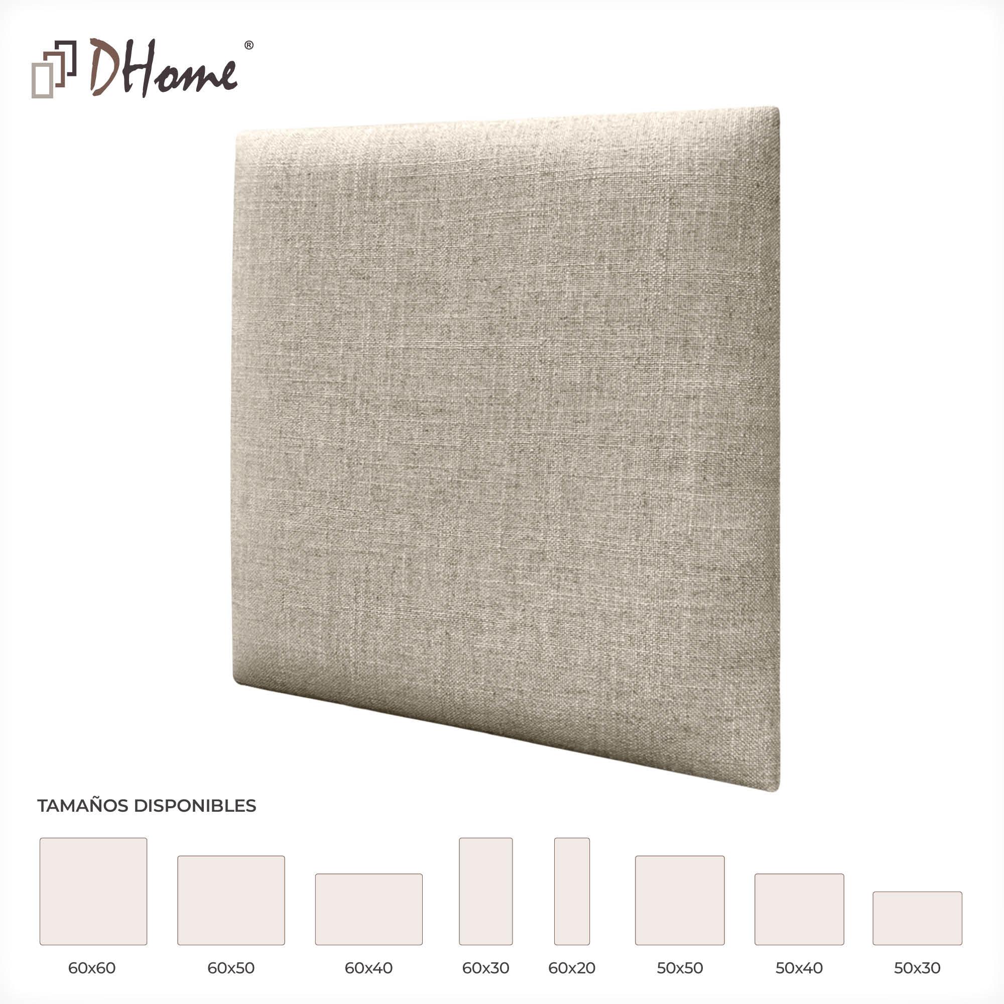 DHOME Conjunto de 6 Painéis Estofados em Linho Pack Autoadesivo para Parede Acústico Absorvente Proteção contra Impactos (Bege, 60x60cm, x8)